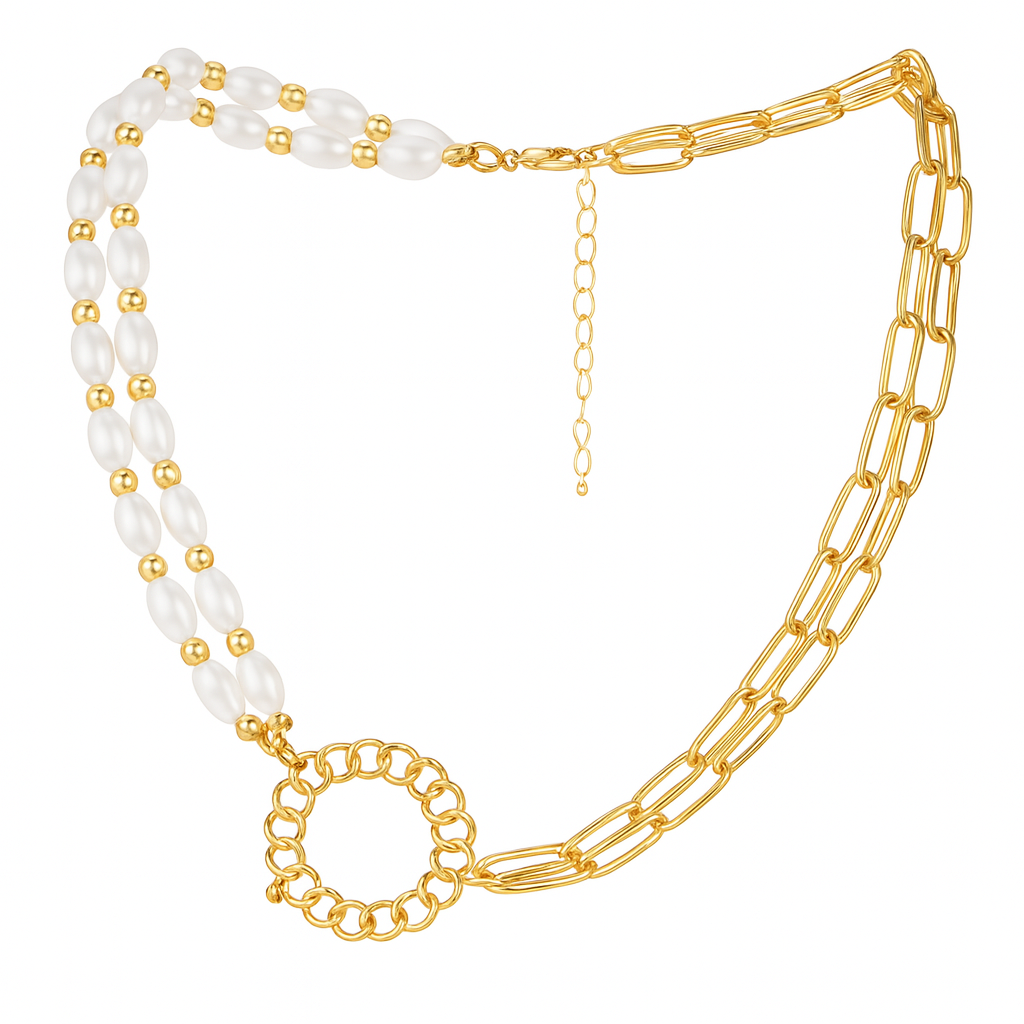 Add a romantic, modern touch to your jewellery collection with this gold heart pendant layered necklace—a beautifully designed piece that pairs classic charm with a contemporary twist. Featuring two delicately layered chains, one holds a small sparkling round crystal charm, while the other displays a bold, gold-tone heart pendant that sits perfectly on your neckline. Crafted from high-shine gold-plated alloy, this necklace is lightweight yet durable, perfect for everyday wear or special occasions. The adjustable chain ensures a comfortable fit, whether you wear it as a choker or mid-length necklace. Ideal for women and teens, this piece is a versatile accessory for casual outfits, formal dresses, or even bridal parties. Looking for a thoughtful gift for her? This heart necklace is a great choice for Valentine’s Day, anniversaries, birthdays, or just to show love. Add a touch of romance and elegance to your outfit with this layered gold necklace featuring a dainty heart pendant and a shimmering crystal charm. Crafted with a sleek double-chain design, it combines minimalism with femininity for an effortlessly chic look. Perfect for daily wear or special occasions, this lightweight necklace enhances both casual and dressy outfits. Its adjustable clasp ensures a secure and comfortable fit, making it a must-have in every jewelry collection. 💖 Heart Pendant Charm: Classic symbol of love in a polished gold finish 💎 Dainty Crystal Detail: Adds subtle sparkle and elegance 🔗 Layered Design: Dual chain style for a trendy, feminine look 📏 Adjustable Clasp: Ensures a perfect, comfortable fit 🪶 Lightweight & Comfortable: Ideal for all-day wear 👗 Versatile Styling: Complements everyday and occasion wear 🎁 Thoughtful Gift: Perfect for Valentine’s, birthdays, or anniversaries