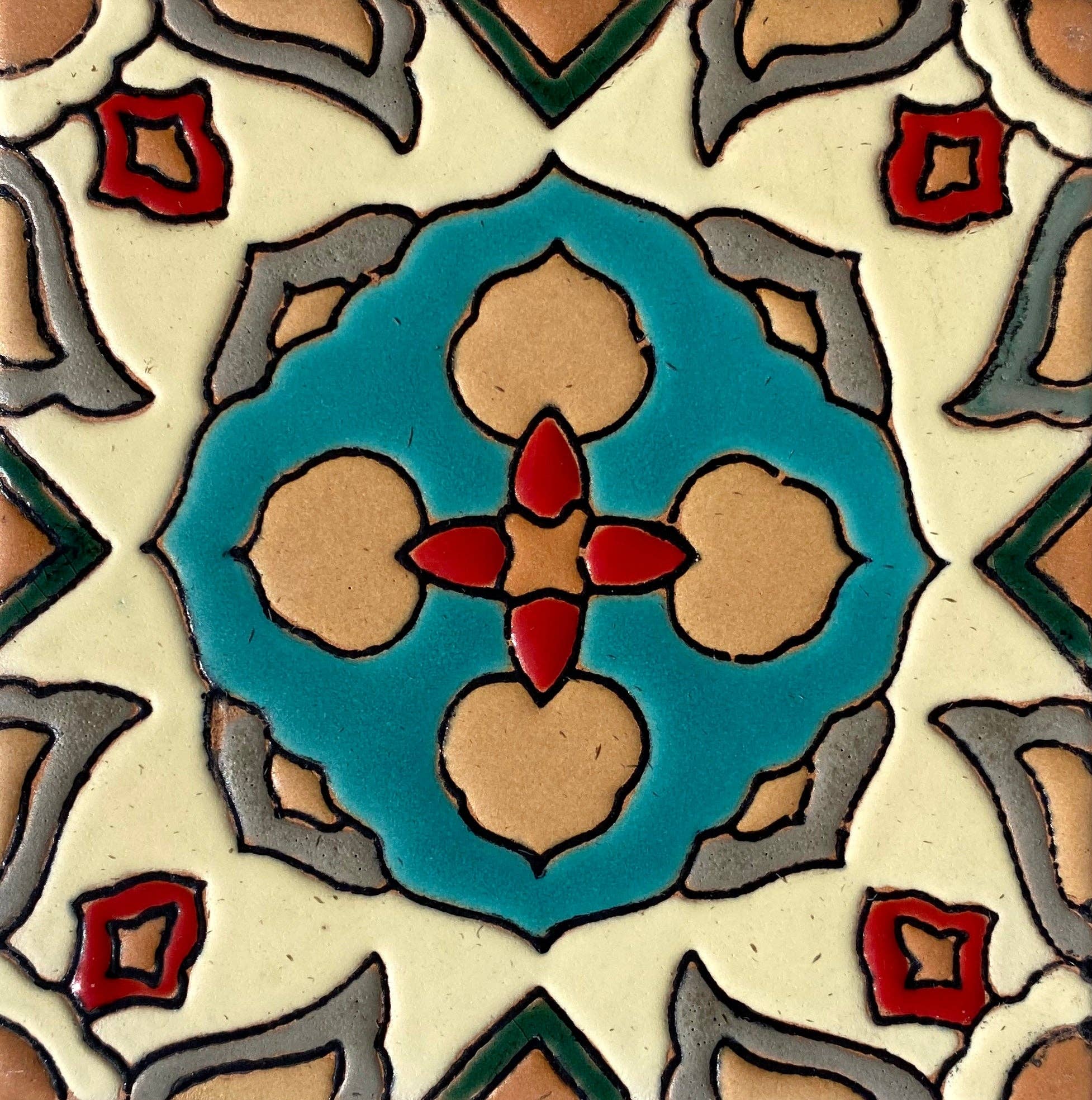 The San Luis Obispo tile from our San Luis Obispo Line. Every tile is handmade and unique. Available and sold per individual tile. For any questions regarding our Talavera Tiles please feel free to call Place of Clay at (602) 252-1506.
