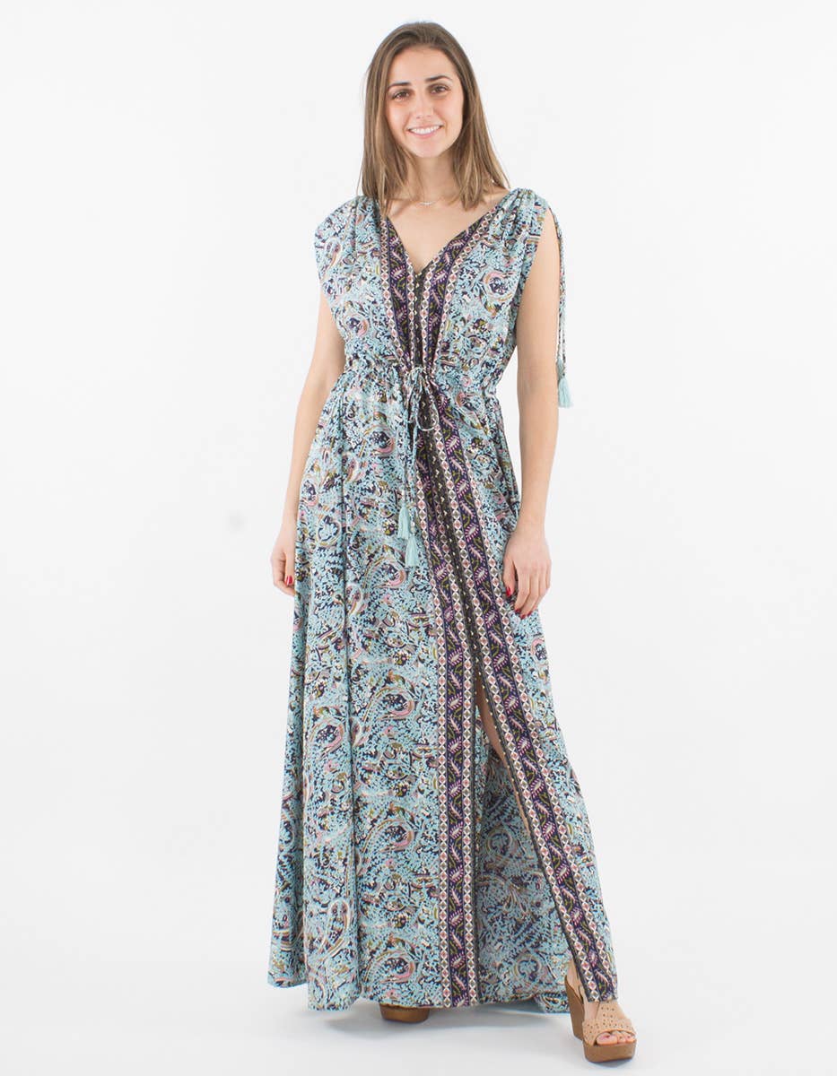 Hippy floral long dress with v-neck