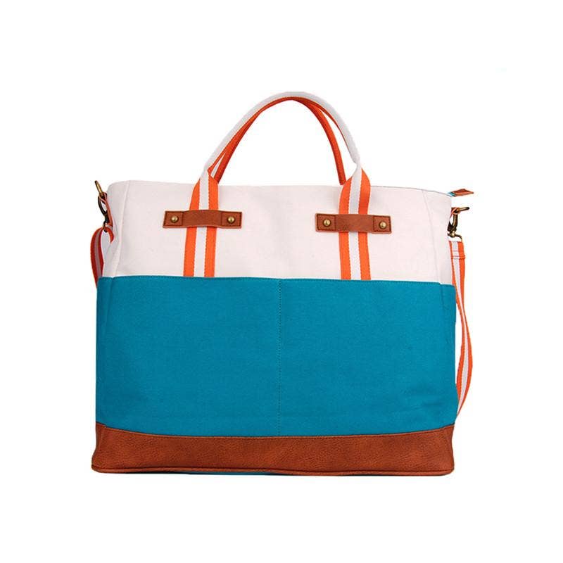 Our Garment Tote in our Newport Collection is practical and fashionable. It is made of a gold, high quality canvas with a navy and gold center accent stripe and features a simple fold over design with 2 large exterior pockets for your smaller items. This bag is large enough to hold multiple outfits while still being lightweight and easy to carry. 44" x 24" x 3".