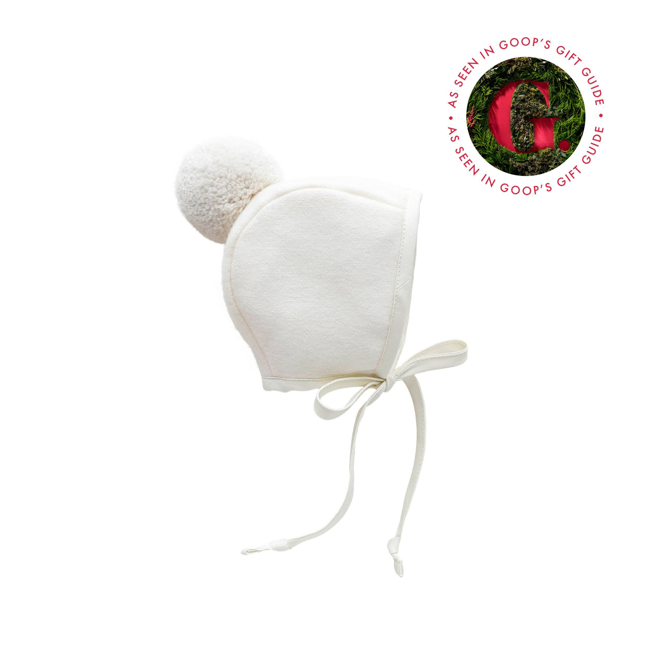 Ivory Pom Bonnet Cotton-Lined