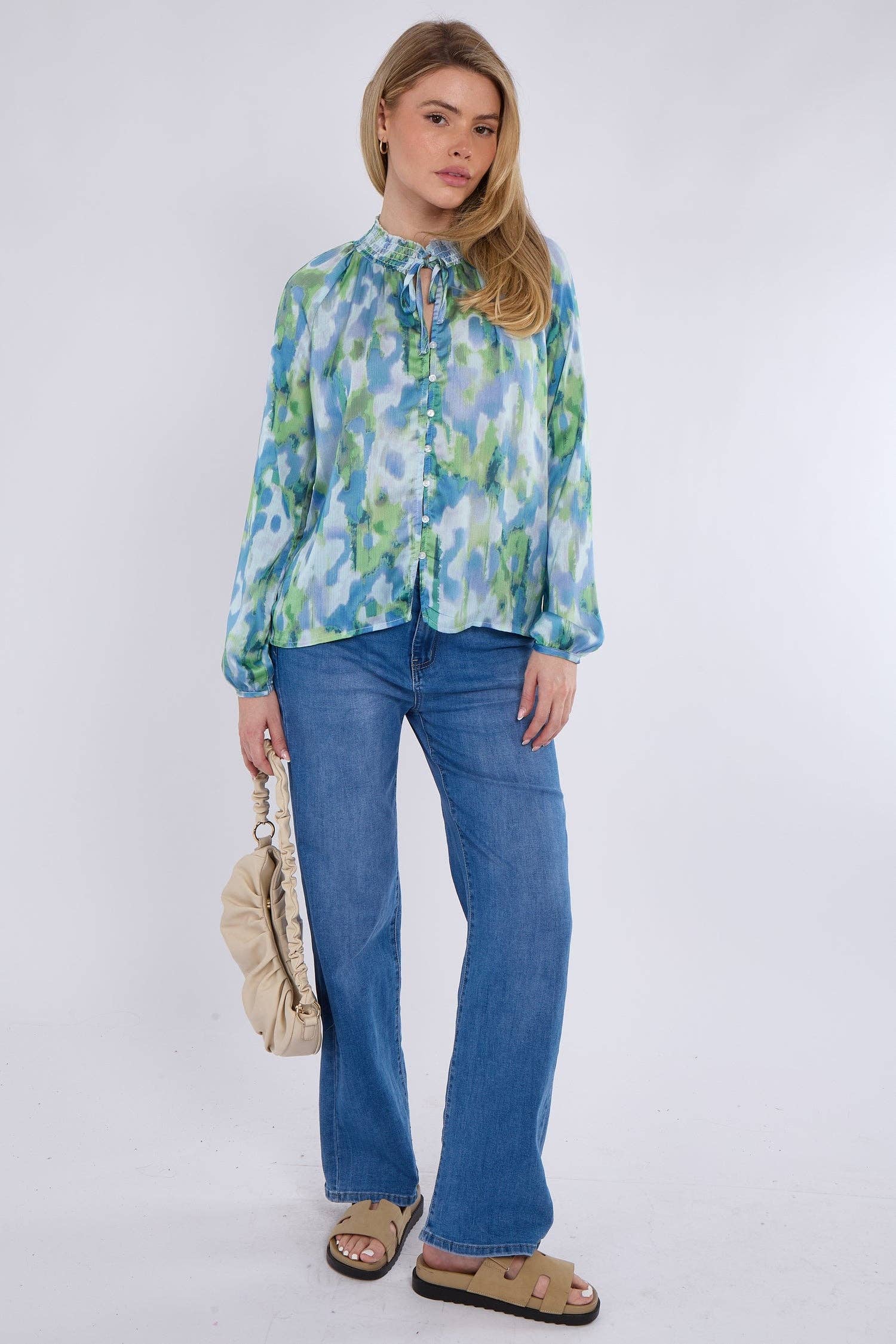 Green Tie Dye Stripe Print Satin Oversized Shirt