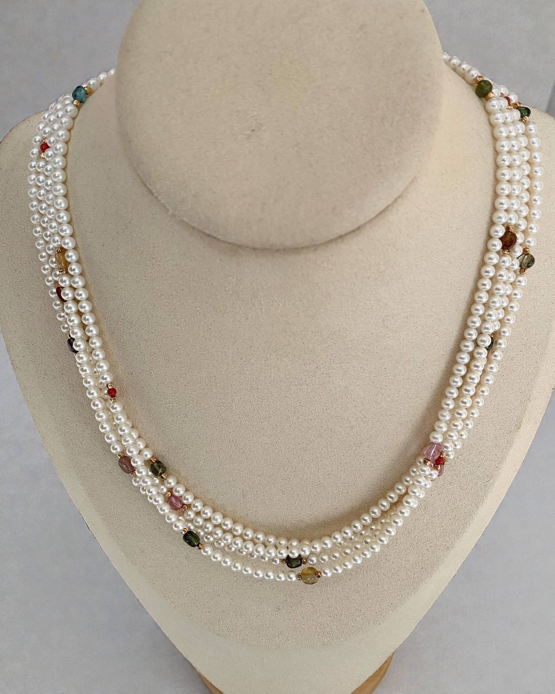 Product Description: Wildly popular for his three-strand pearl necklaces, Kenneth Lane constructed one of the most beautiful pieces of them all for none other than former First Lady Jacqueline Kennedy Onassis. Comprised of iridescent glass white pearls and finished with a beautiful, rhodium-plated and rhinestone Art Deco foldover clasp, you will be the epitome of class with this special piece. Dimensions: 17" (Shortest Strand), 18.5" (Middle Strand), 20" (Longest Strand) Style Number: 9795N