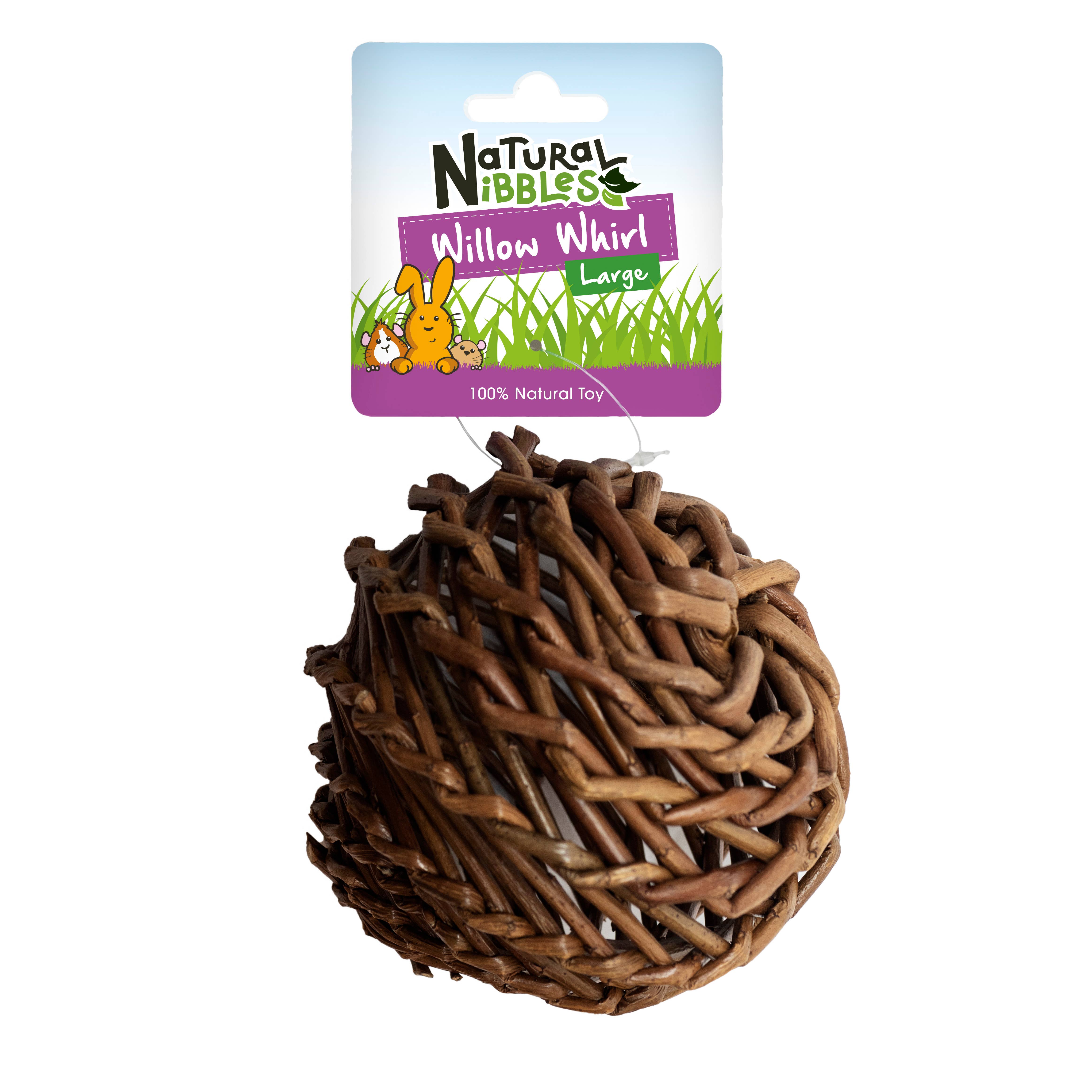 Our pack of hanging play balls is a fantastic enrichment toy that your bunny, or small pet, will love to chew and chase. Our play balls are great for hanging in their enclosure, encouraging rabbits and other small pets to nibble and play. This pack contains one willow ball, one seagrass ball, and one natural grass ball for your buns to nibble. Willow, seagrass, and natural grass are the perfect, rabbit-safe materials for weaving into fun, engaging toys for small pets. Chewing these crunchy fibres will help to naturally support your rabbit’s dental health by wearing down their continuously growing teeth. Bunnies love the taste of willow, making our toys ideal for keeping them entertained. Not only do our seagrass and natural grass toys help to reduce boredom, but they are also high in fibre, helping to support digestion. Approximately 50cm x 13cm. Feeding Guide - Place in your rabbit’s space for chewing, hiding, and exploring. Check regularly for wear and replace if needed.