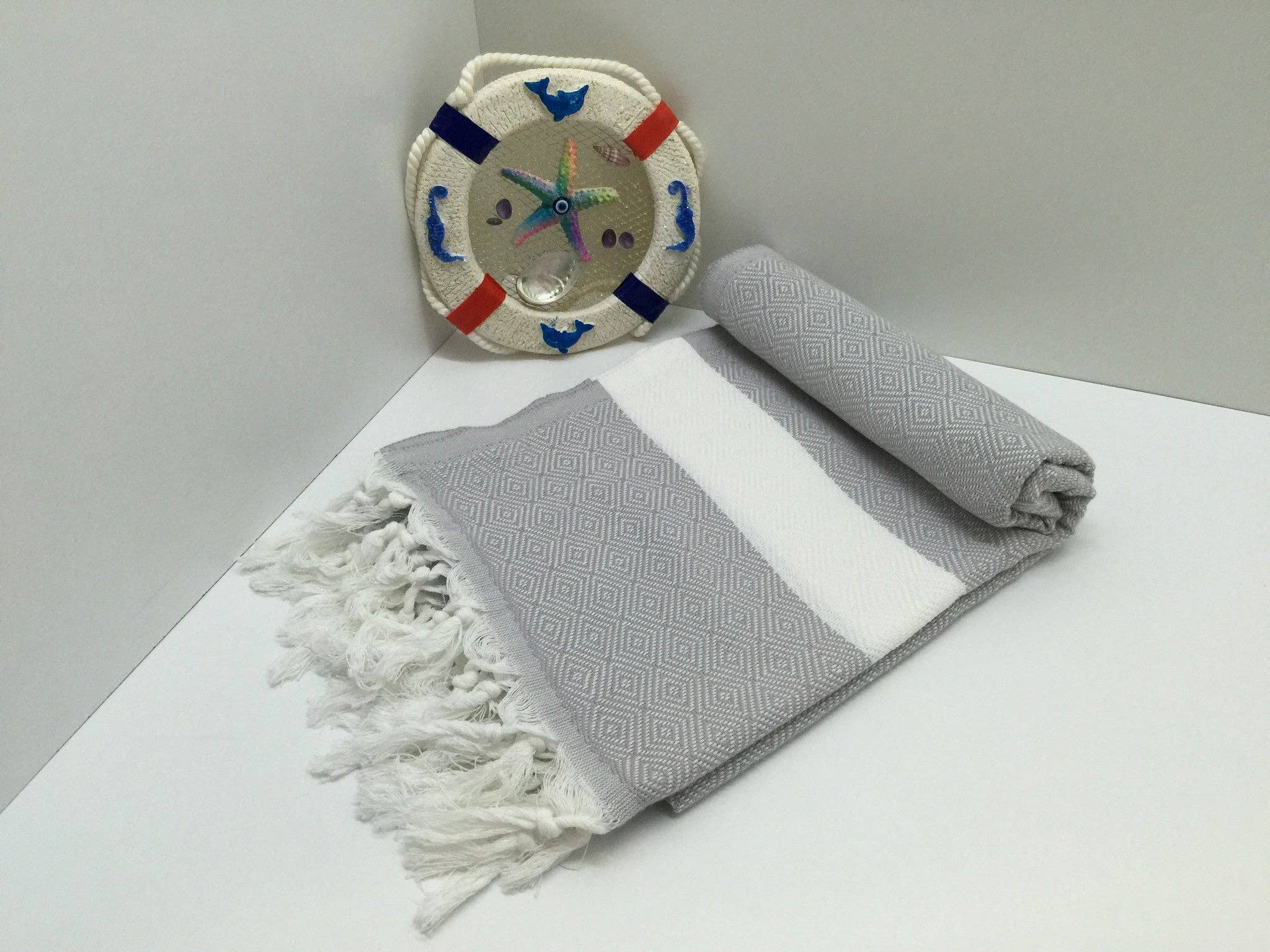 These Turkish peshtemal towels are made from 100% Turkish cotton. They are very light and very easy to carry to Gym, Yoga, Beach or Spa. Compared to a regular gym towel, these occupy almost no space in your bag or locker. They are super absorbent and dry with lightning speed compared to a regular towel. They weigh about 10 oz(300 grams) The width is approximately 39" and the length is 71". (100 cm x 180 cm).