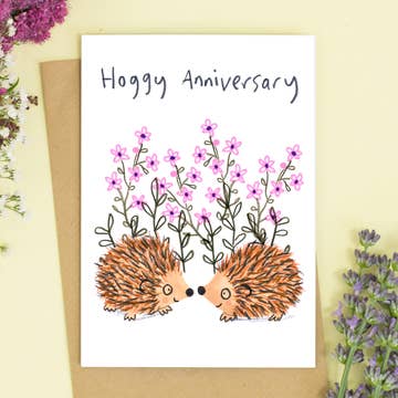 Happy Anniversary wreath greetings card. A botanical anniversary card from our ORIGINALS collection. Printed onto FSC accredited card & accompanied by a recycled brown envelope. A6 in size. Illustrated in our Yorkshire studio, proudly made in Britain. All cards are blank inside for your own message.