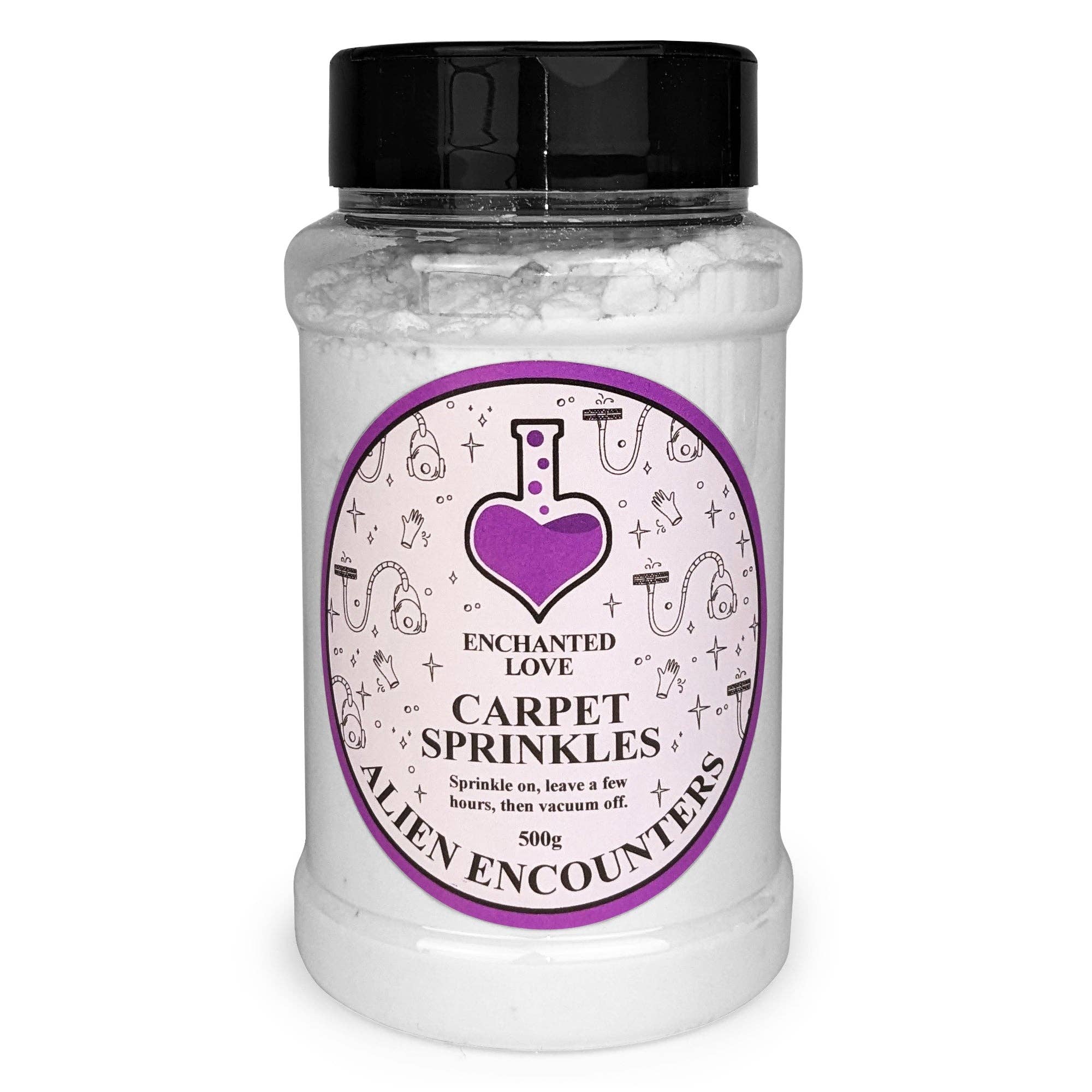 A fresh, uplifting bubble gummy scent. A classic high quality fragrance. Carpet sprinkles eliminate lingering odours that get trapped in carpets leaving your room smelling fresh and clean. Simply sprinkle on, leave for a few hours, then vacuum off. Your room will be left smelling beautifully of your favourite fragrance. * 500g carpet fresh powder * Easy sprinkle lid with two settings * Long lasting, powerful fragrance * Packaged in recyclable tubs * Handmade in the UK * Cruelty free Enchanted Love is an exciting new brand with a bold & fun range of home fragrances. We love creating scents that fill our homes with powerful fragrance & uplifting nostalgia. All of our products are handmade with love in the UK by our family-run business, using locally sourced materials to help strengthen our community. We use recycled materials where possible, cruelty-free ingredients, and high quality fragrances with maximum inclusion levels of fragrance.
