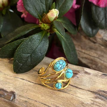 Elevate your style with this stunning geometric open ring featuring a vibrant turquoise accent. Perfect for adding a pop of color to any outfit, this ring is designed for everyday wear and special occasions alike. **Key Features:** - Unique geometric design - Adjustable fit for comfort - Versatile for stacking or wearing alone **Styling Suggestions:** - Pair with other rings for a trendy stacked look. - Style with casual or formal outfits for a chic statement. **Care Instructions:** - Store in a cool, dry place. - Clean with a soft cloth to maintain shine.