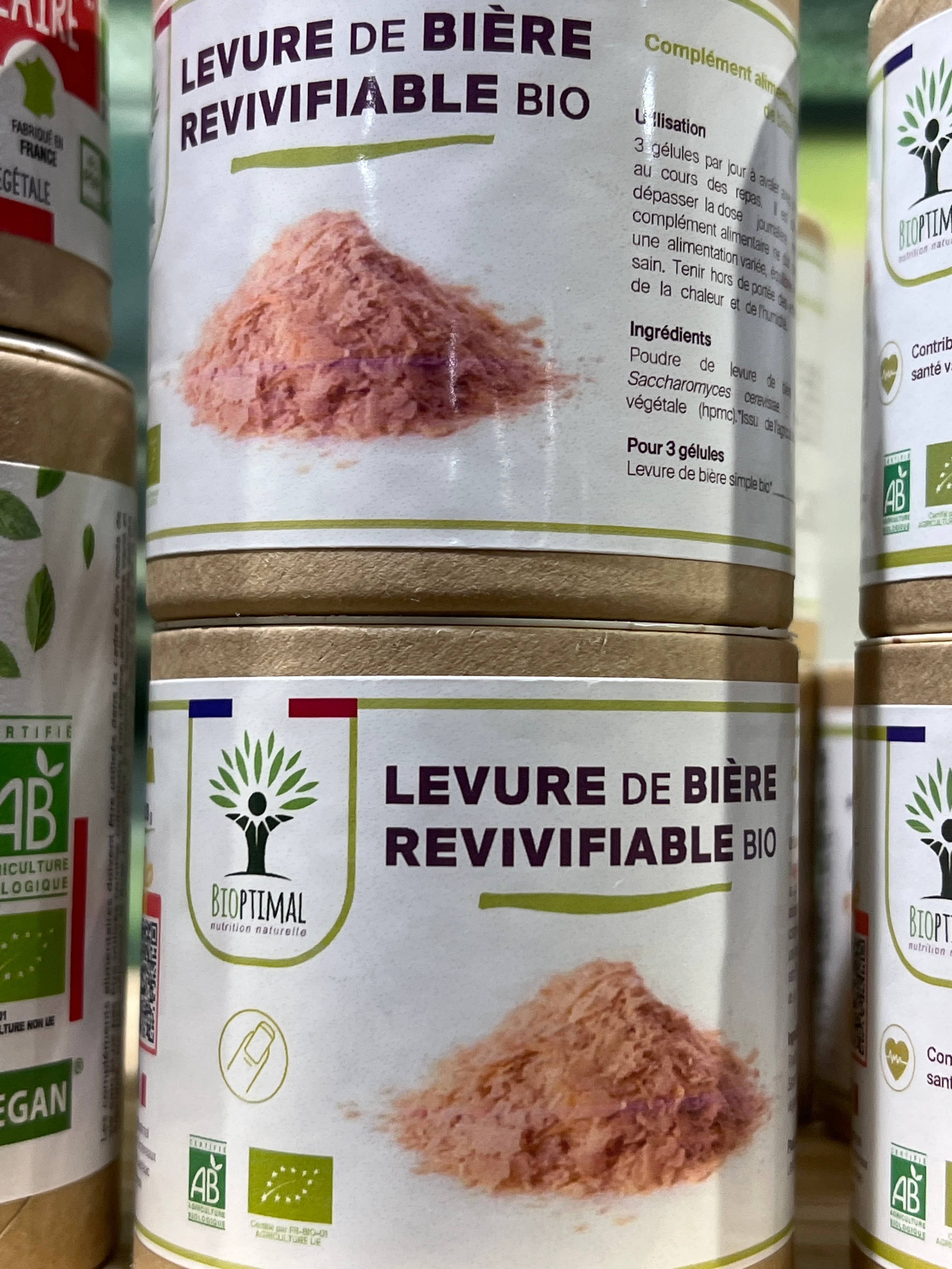 ● HIGHLY DOSED Our brewer's yeast is pure and organic, which gives it a high assimilation power. In addition to being 100% natural, our product contains 400 mg of brewer's yeast powder per capsule and nothing else! That's 1,200 mg per recommended daily dose. ● FRENCH QUALITY = SAFETY We manufacture our dietary supplements in France, and we have chosen to encapsulate our organic brewer's yeast in vegetable capsules rather than tablets to avoid incorporating controversial substances such as talc, stearate, or magnesium carbonate. Our products are guaranteed free from additives, fillers, GMOs, pesticides, and gluten. They are laboratory-tested in France and certified organic agriculture, HACCP+, and Afnor.