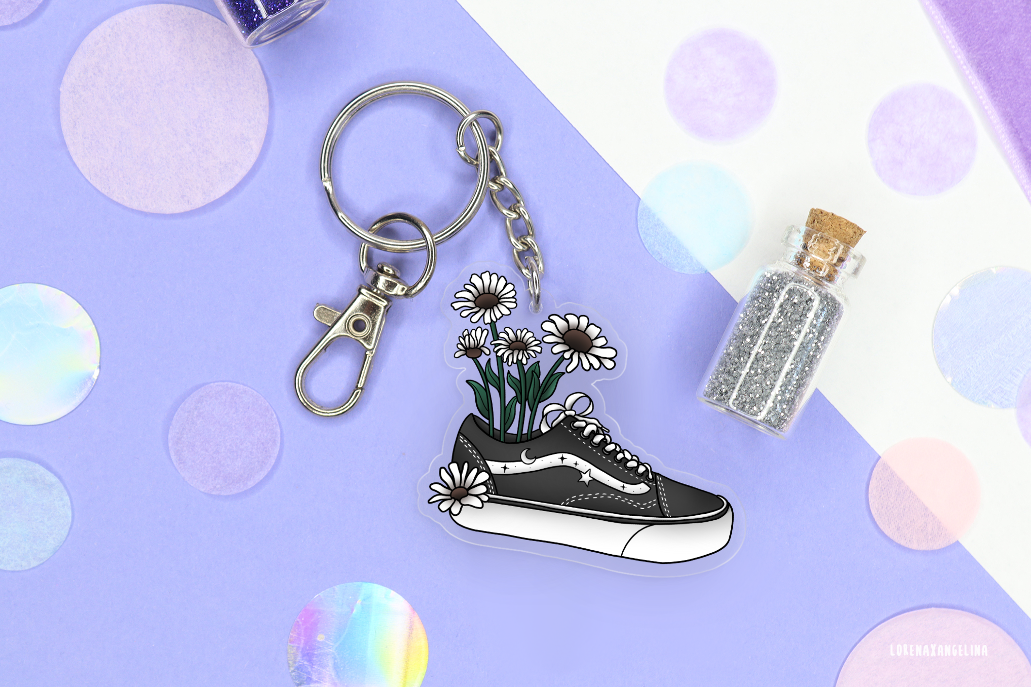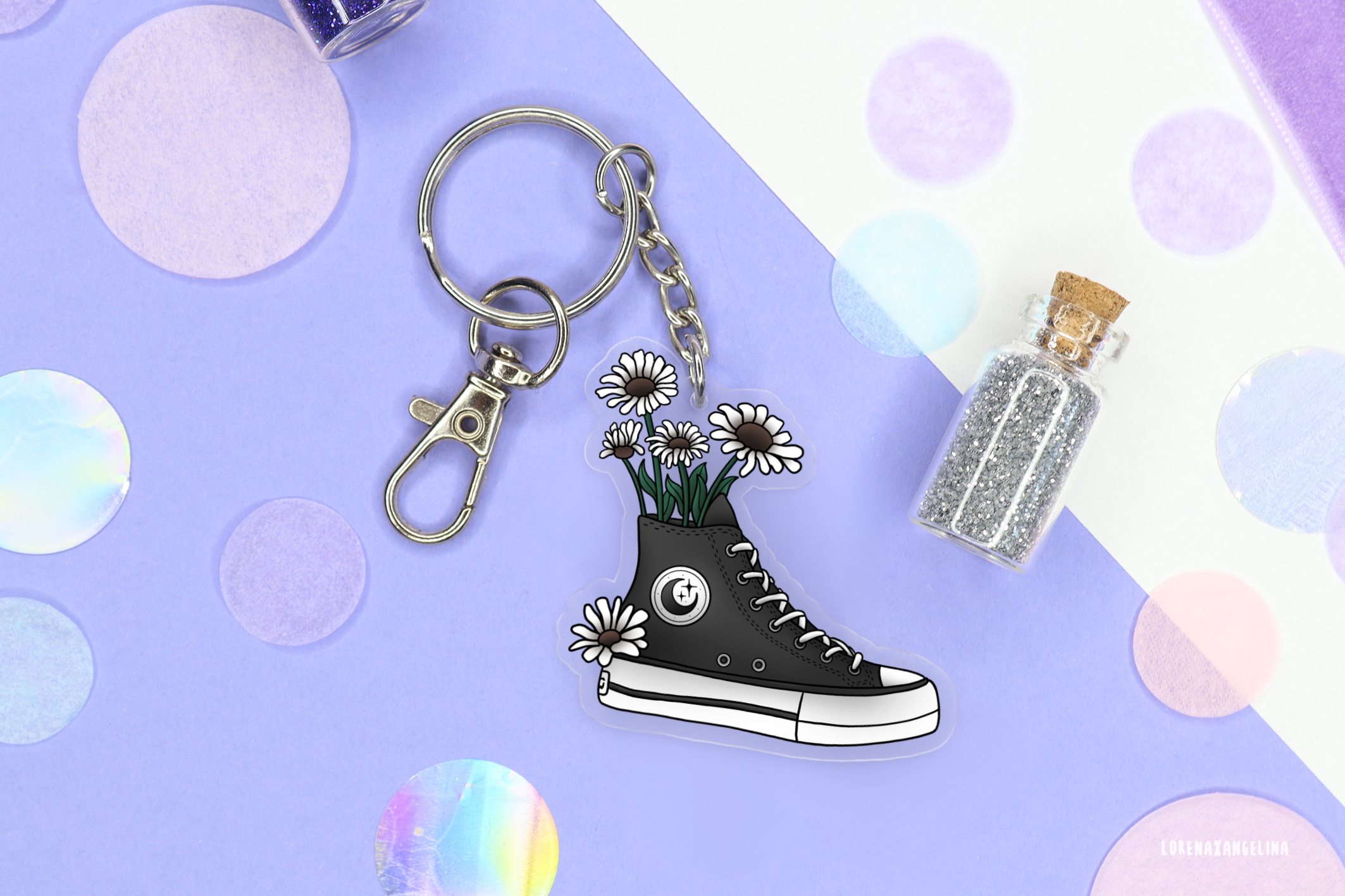 Key ring made from 100% recycled acrylic with my “Mystical Moth” drawing. It can be completely recycled again. A hook is also included, making the trailer particularly easy to use. For example, you can perfectly attach this pendant to your backpack or bag. The trailer is packed in environmentally friendly cellophane bags. - INFORMATION - • 5 cm (2 inches) • Matte finish • Made in an environmentally friendly way • 100% recycled material • with chain and hook Please note that colors may vary slightly depending on how your screen is calibrated.