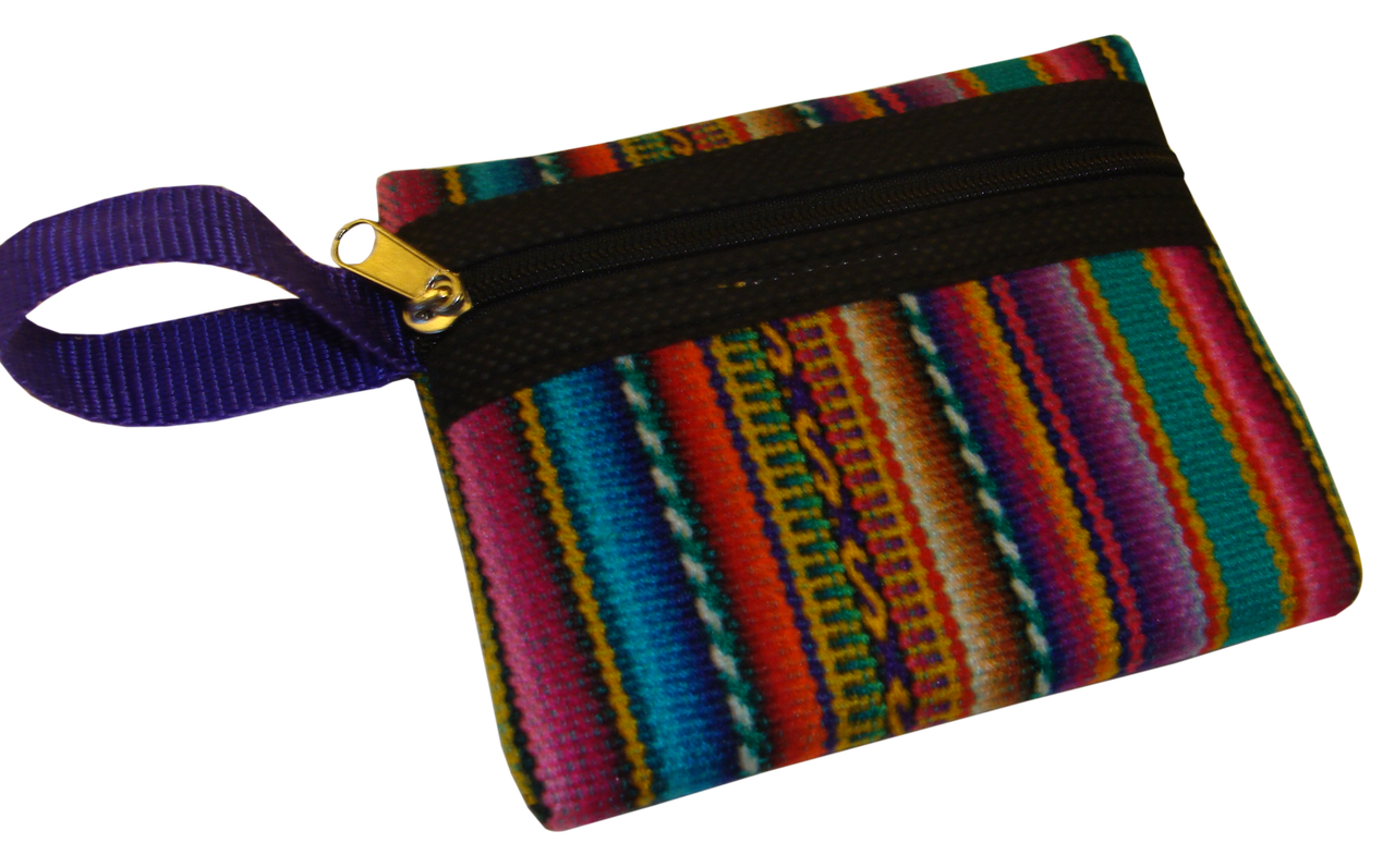 Peruvian Coin Purse Handmade Woven Textiles Made in Peru Ceremonial Weavings Ethically Sourced Wallet Gift, Travel, Purse Accessory Specifics: 100% cotton 3" x 4" Features a zipper closure Hand-crafted item -- color, size and/or motif may vary slightly Do not wring Hand wash with mild detergent Air dry Made in Peru
