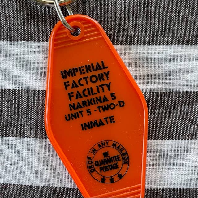 Vintage style motel key fob, complete with 32 mm slip ring, featuring another Star Wars location.