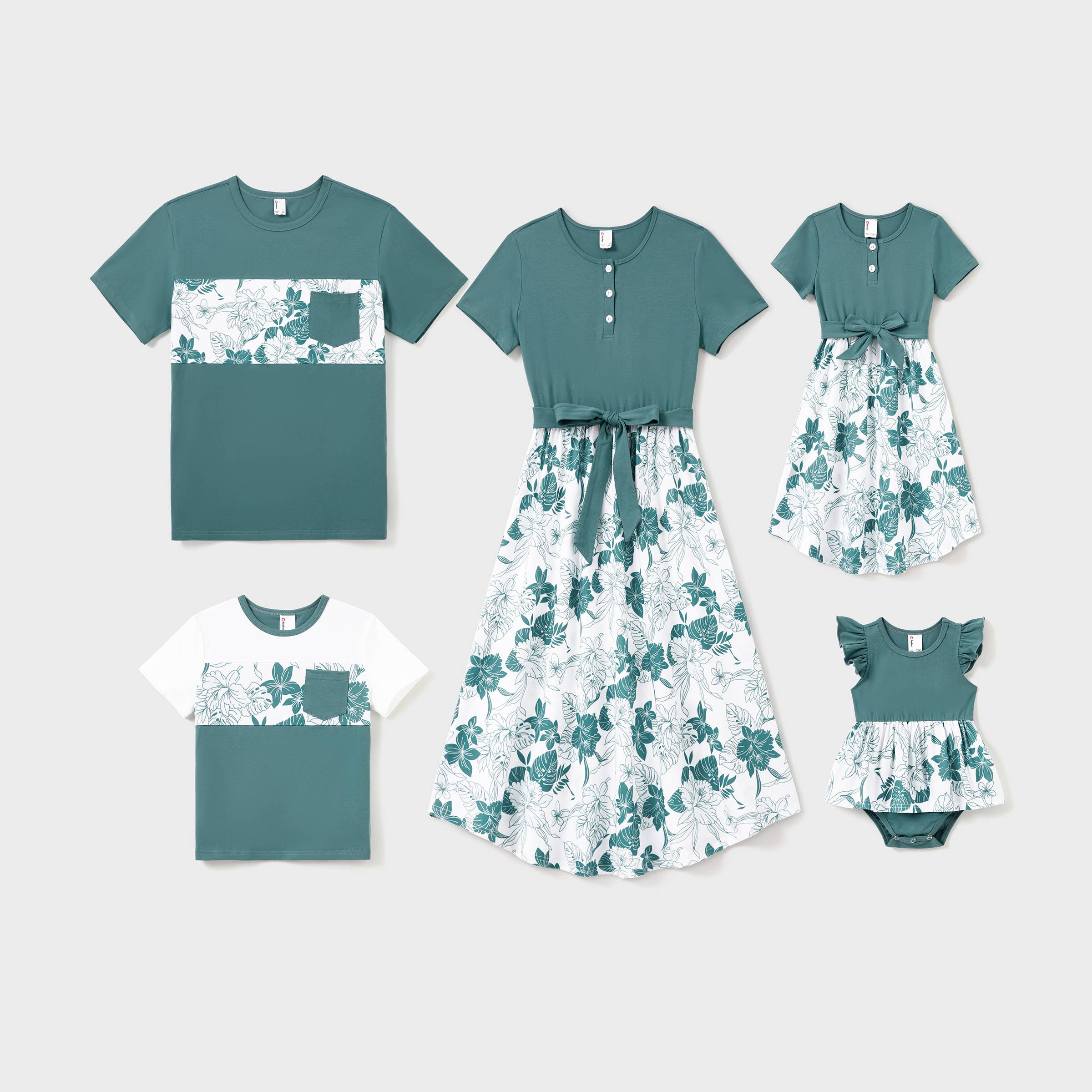 Family Matching Sets Floral Tee or V-Neck Sleeveless Dress