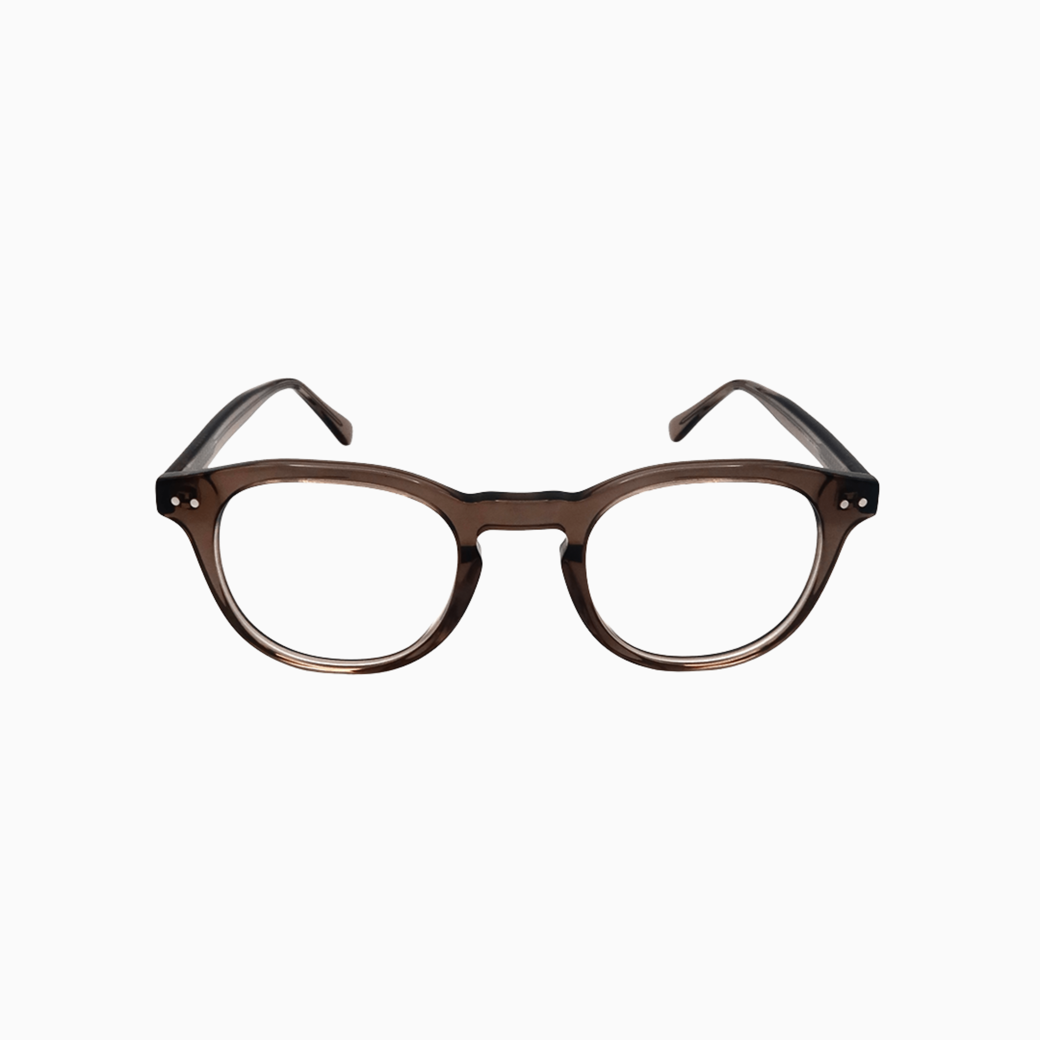 Oval-shaped frame available in translucent, black acetate, and tortoiseshell acetate.