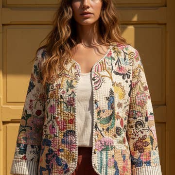 Limited Edition – Only 7 Made A jacket meant to go places—and carry beauty along the way. This relaxed fit, unlined silhouette is crafted from rare designer deadstock jacquard in a vivid floral green—impossible to miss, and impossible to replicate. Designed with movement and memory in mind, it features two roomy exterior patch pockets and a hidden interior pocket to tuck away keepsakes gathered on the go. Inside, all seams are finished with vibrant satin bias ribbon—an unexpected flash of luxury just for you. The long sleeves are made to be rolled, inviting your own personal touch. Though unlined, nothing is unfinished—only intentional. Comfortable enough for everyday, while polished for that special event. The fit is relaxed. The feel, refined. And the fabric? Gone once it’s gone. We can only produce seven jackets from this one-of-a-kind yardage. Included with your purchase is a companion devotional mini-collection from the Flourish Heartmade series by House of Magsarili Press—three soul-refreshing reflections inspired by Colossians 2. Pre-order now to reserve your bundle. Shipping late May. 'When Verde Bloomed'- built for the journey.