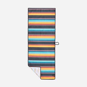 A stylish, useful, high-quality towel for your next round. Waffled microfiber material, printed with different art on each side to give you versatility and style on the course. Sustainable and Soft washable fabric, made from recycled consumer plastic bottles. 14"x40" with a rivet and Carabiner for easy fastening.