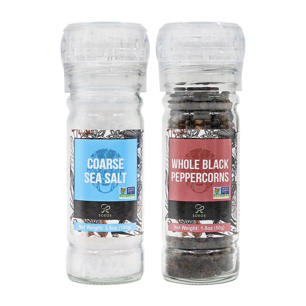 Spices Set Salt and Pepper Set Details * GREAT GIFT FOR ANY CHEF OR FOOD LOVER: You get black peppercorns 1.4oz, white sea salt 3.5oz, rainbow peppercorns 1.4oz and pink salt 3.5oz in just one set which makes them affordable even if your budget's tight. This spice set is the perfect gift for those who love to cook. * EXTEND FRESHNESS: A small bottle will keep your spices fresh for a long time. Closed storage ensures that only spices end up only on top of whatever food you're preparing. The grinder is non-corrosive and won't absorb flavors, so you can be sure that no matter how much time passes in between grindings, the taste will never change.