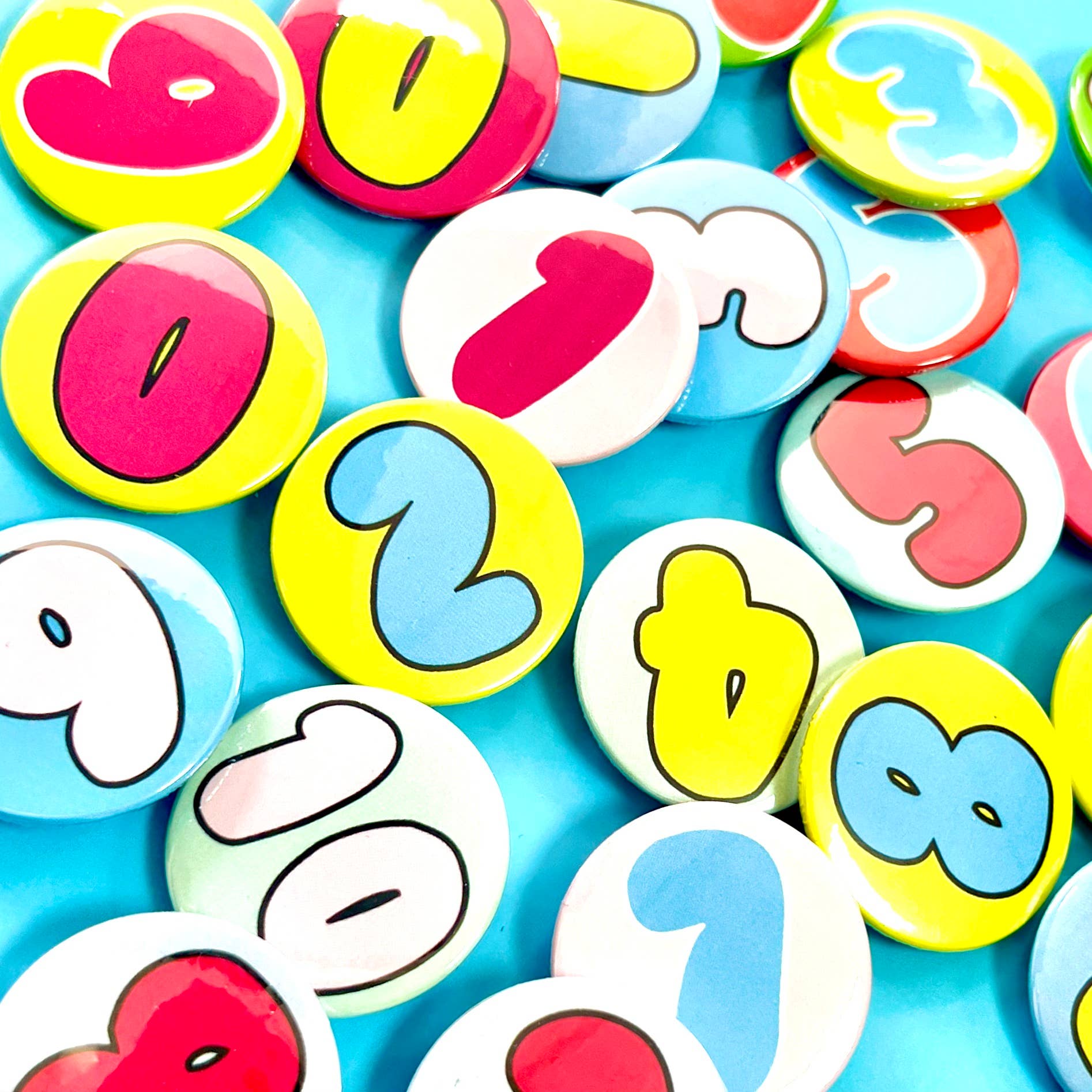 100 Badge assortment, selected at random each badge is different 38mm high gloss flat pin badges