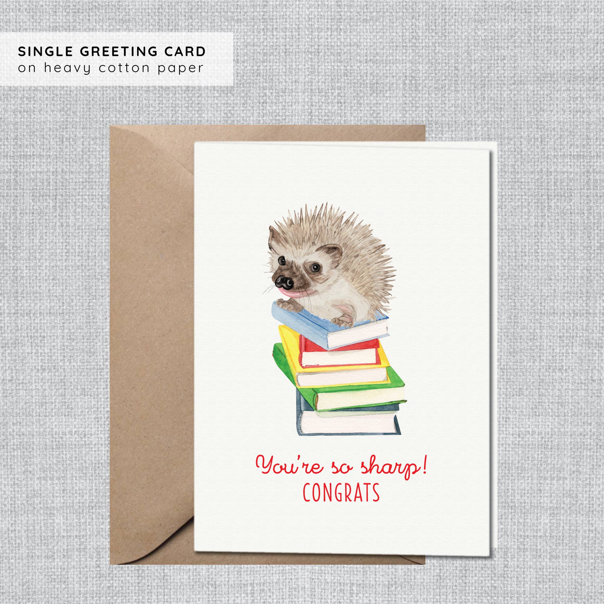 Text on front: Congrats on your Bar Mitzvah Our cards are: • Made from our original watercolor paintings • Printed on heavyweight, tree-free paper • Recyclable and biodegradable Gina Maher | Watercolor was established in 2010 in Fairfield, Connecticut by Illustrator and Graphic Designer Gina Maher. We are a woman-owned, family-run small business delighting customers all over the world with our eco-friendly snail mail. Details: • A2 side-fold card with v-flap kraft envelope • Blank inside for customer's own message • Designed and assembled in Fairfield, CT • Printed in USA on 100% cotton paper • Individually packaged in clear cello sleeve • Product dimensions (4 3/8" x 5 3/4") Perfect for... Bar Mitzvah Cards, Bat Mitzvah Cards, Mazel Tov Cards, Religious Cards Boy Also considered... Gift Shop Cards, Jewish Cards, Judaica Cards, Judaism Cards, Temple Cards, Modern Bar Mitzvah, Modern Bat Mitzvah, Non-traditional Cards