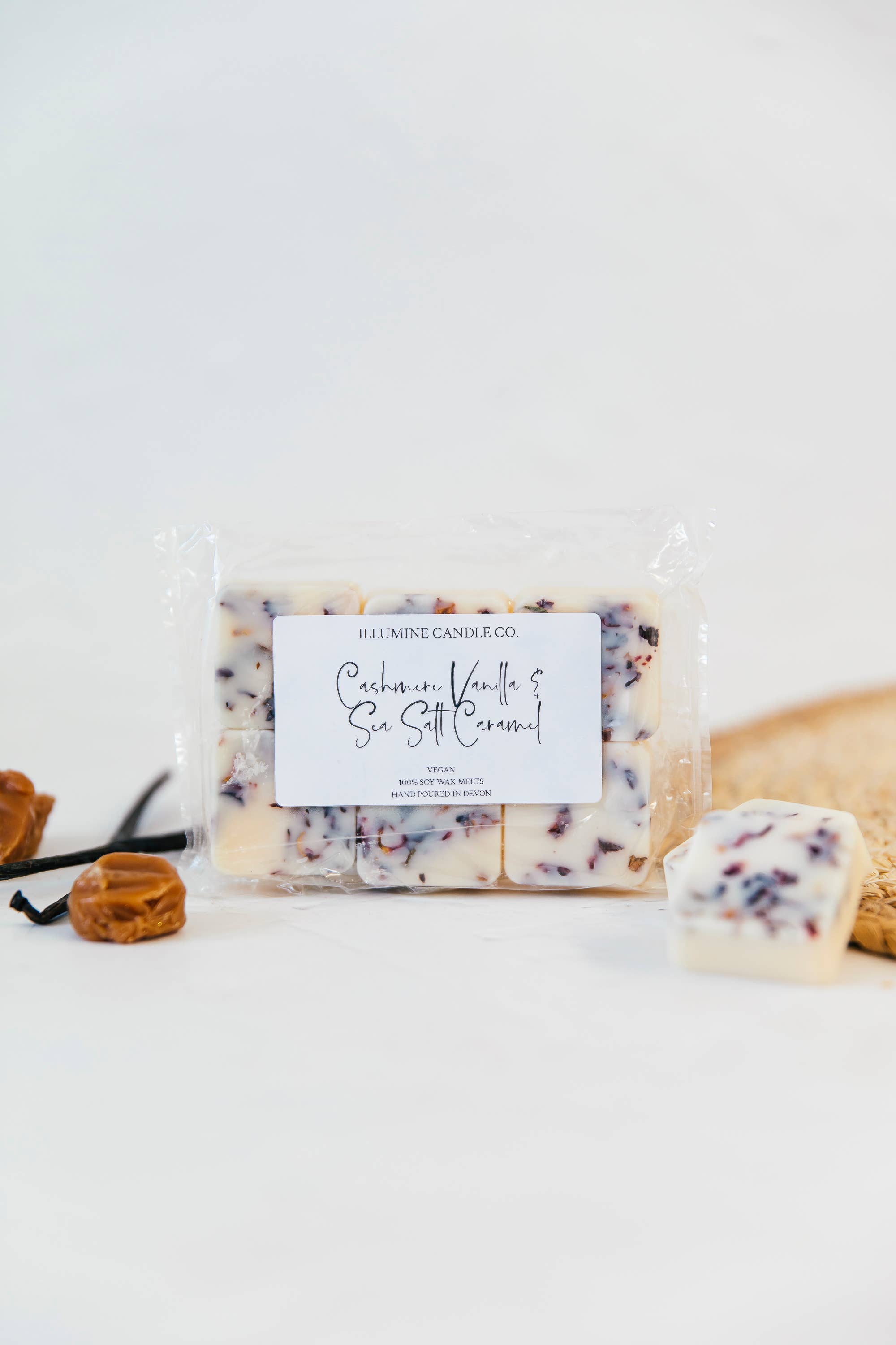 Six large, beautifully scented soy wax melts with a burn time of approximately 8 hours each. Made using 100% soy wax, quality fragrance oils and dried botanicals. Scent description: Wowee. What a beautiful scent - our Sandalwood & Vanilla Fragrance Oil is musky and earthy, with gentle notes of vanilla over a comforting sandalwood base. Sweet and soft, this is the perfect scent with which to relax and unwind. The type of scent that everyone needs in their home! Our wax melts are hand poured and crafted here in Devon. They are Vegan, Cruelty Free, Paraben Free and Palm Oil Free. The wax melt packaging is biodegradable and compostable.