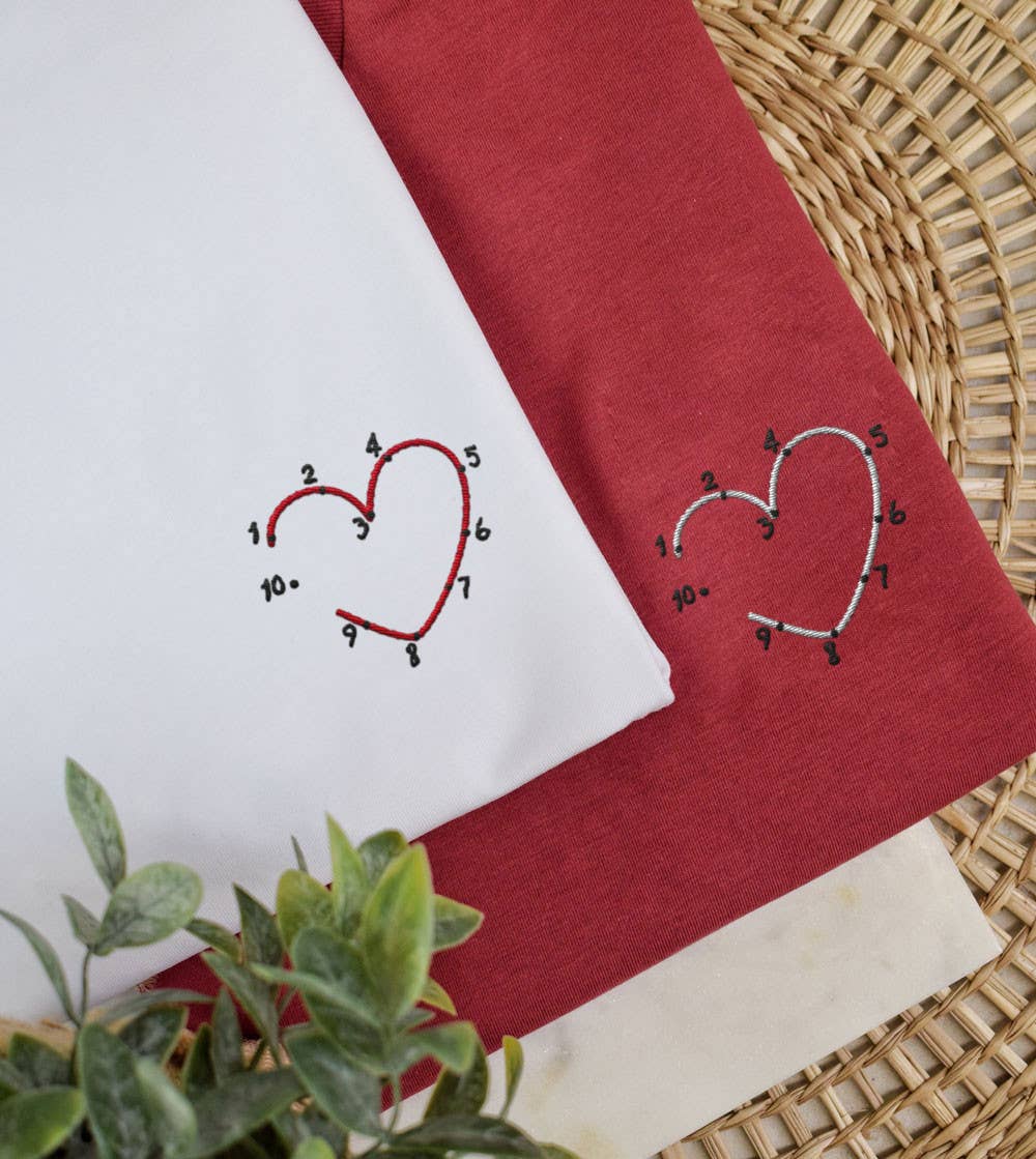 Embroidered T-shirt in 100% organic cotton certified GOTS. Basic fitted t-shirt with a unisex round neck that fits both men and women. Ideal T-shirt for any season, the chemical formula of Love, everyone would like to know it! Ideal gift to give to your lover. T-shirt embroidered in our workshop in the Paris region.