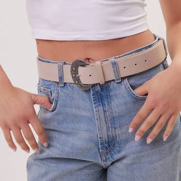 An eye-catcher! This beautiful belt made from simple cowhide impresses with its trendy chain design buckle. More features: - Belt color: cognac (light brown) - Buckle color: argento America - Belt width: 40mm - Belt length: the belt is available in a waist size of 75 - 105 mm. Please select the desired size above. - The specified length is measured from the center hole to the buckles. This then corresponds to the waist or hip circumference. - 100% cowhide with nickel-free buckle All our belts are equipped with a screw system. This means that you can individually adjust the belts to your customers in just a few minutes using a tape measure and scissors if required. This belt is carefully handmade in our production facilities in Italy and southern Germany. #handgefertigt #handmade #faitmain #Gürtel #belts #ceinture #Leder #leather #Familienunternehmen #fashion