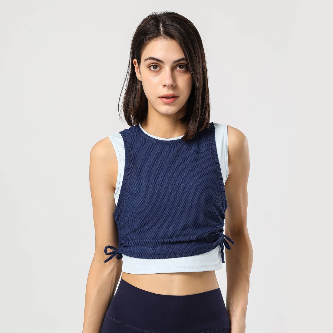 SKU: SM2350-BLUE-S Made in China Aesthetic: Active Care instructions: Machine wash Fabric: 80% Polyamide, 20% Elastane Fit: Missy Occasion theme: Everyday Occasion: Working out Pattern: Solid Rise style: Regular Season: Spring/Summer Sleeve length: Sleeveless Trouser length: Thigh Product language: English Weight: 0.5 kg (1.1 lb) Dimensions: 38.1 x 35.6 x 5.1 cm (15 x 14 x 2 in) Packaging: Plastic-free Production: Ethically sourced
