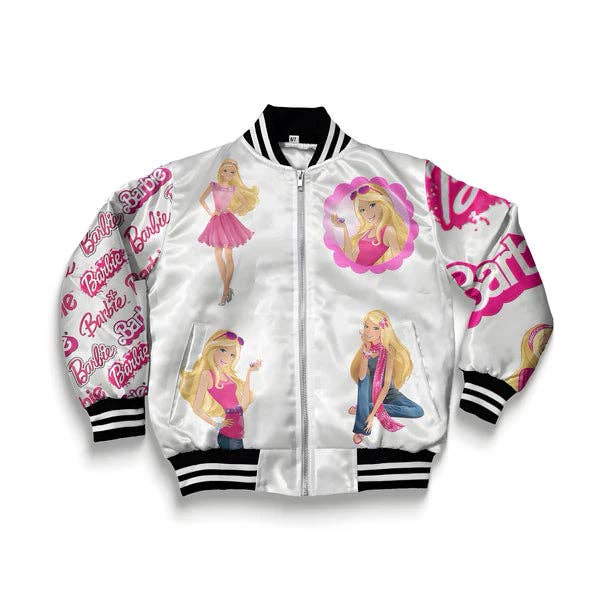 * Available in Kids * 200 Gsm * Name can be personalized * Black and white Collar Cuff * Zip closure * Side Hand Pockets * Ribbed Cuff And Bottom Hem * Padded and Lined * 100% Satin * Sublimation printed *The color of the ribs can be changed as requested *All Jackets Run true to size (U.S sizes) * Machine Wash Cold, Dry Low
