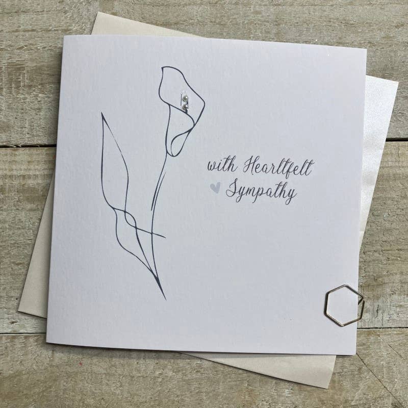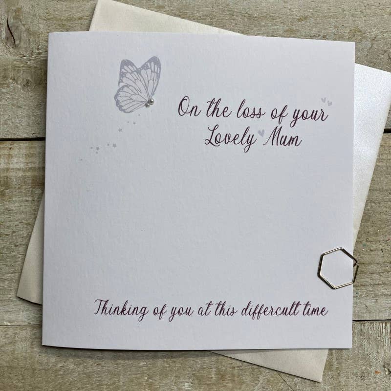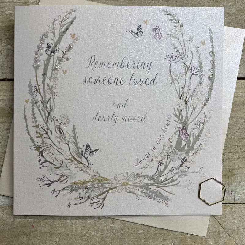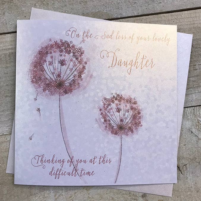 A beautiful Sympathy card, hand glittered on a pale gold shimmering dotty card. Blank inside for your own personal message. 16X16CM- will need a Standard 1st/2nd class stamp.