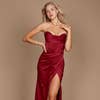 Satin Prom Strapless Cowl Neck with Corset and Side Slit