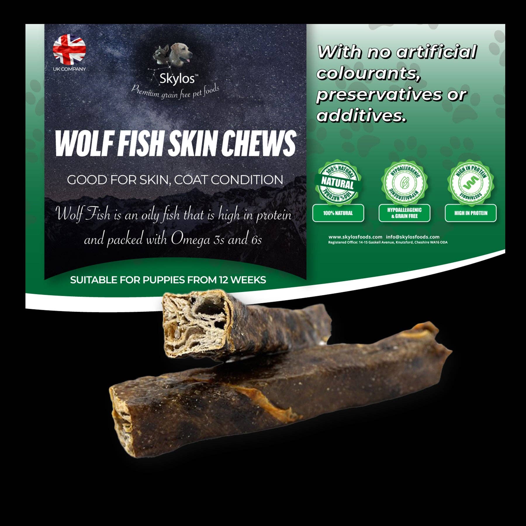 Made from 100% fresh meat/fish... * Suitable for all breeds, both raw and kibble-fed dogs * No offal, just premium cuts of meat * Single source protein treat * Responsibly sourced & proudly made in Europe * No Additives, No preservatives, Grain Free & Gluten Free * Air Dried to maintain natural goodness * Suitable for puppies 4 weeks and over * Hypoallergenic * All packaging recyclable