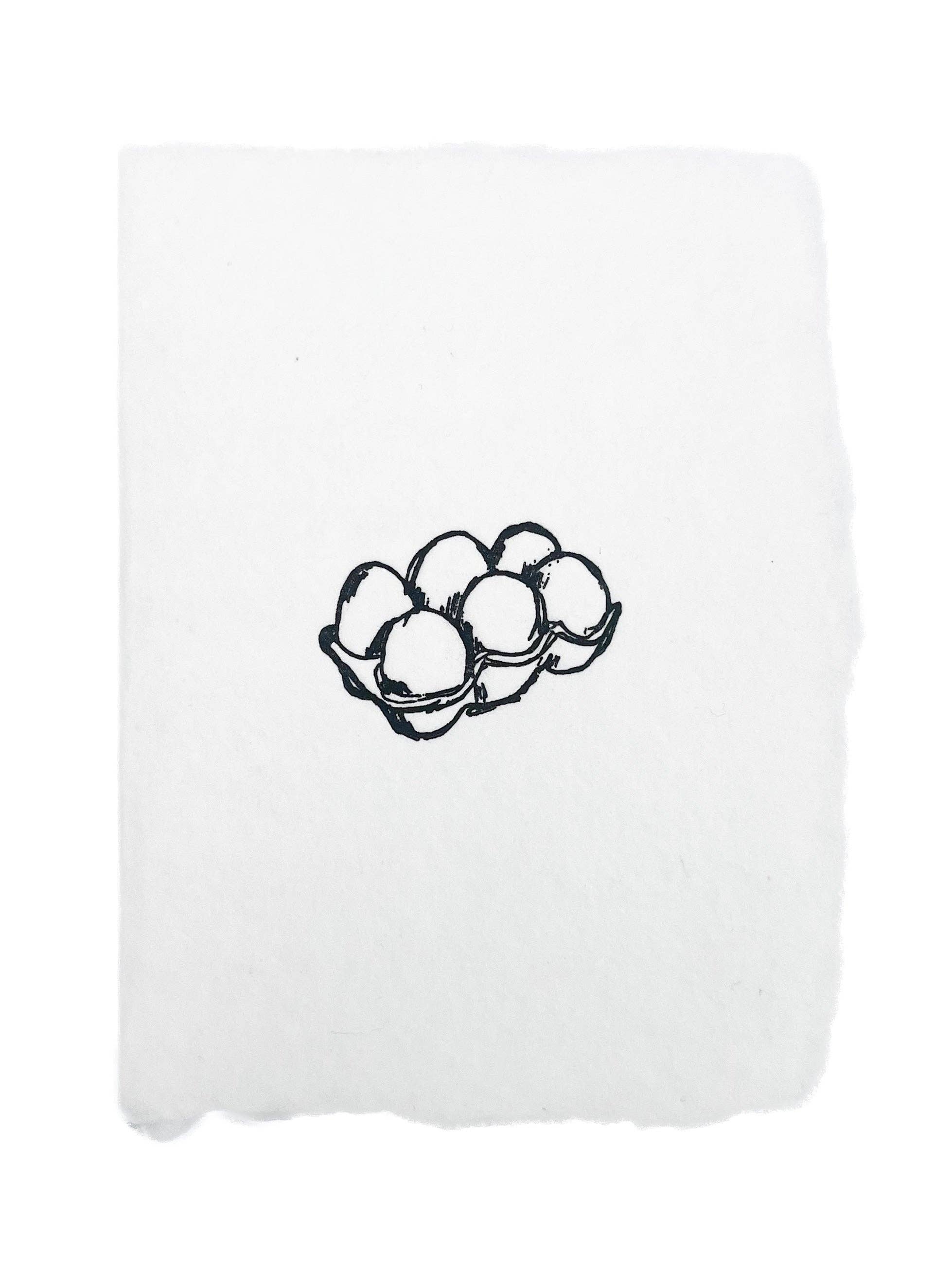 Petal handmade paper with black letterpress ink featuring a sketch of 5 sweet, free range chickens. Full deckle edge paper handmade in our California studio, hand-fed onto antique letterpresses for a textured deboss. Folded Card: Approximately 3 3/4 x 5 1/4 inches folded with inside blank. Back is letterpress printed with a small note including information about the natural dyes used to color each unique piece of paper. Note Card: Handmade paper card with four full deckled edges. Front is letterpress printed; back is letterpress printed with a small note including information about the natural dyes used to color each unique piece of paper. No fold. Comes with an acru A2 envelope and a small card matte printed with photos and a little information about our process. *Please note: all of our paper dyes are botanically-based and will vary because of slight differences in the plant matter, weather, and making process. Expect that the colors will be a little different than the image you see here, and enjoy that your card is truly one-of-a-kind. To maintain the original hue longest, please store out of direct sunlight.