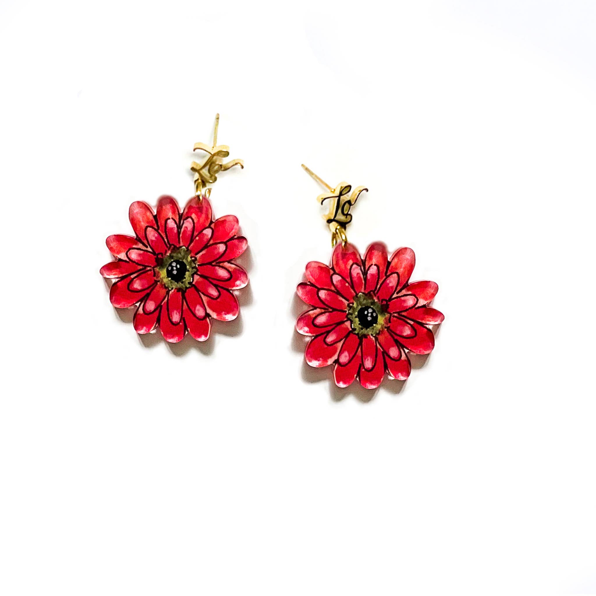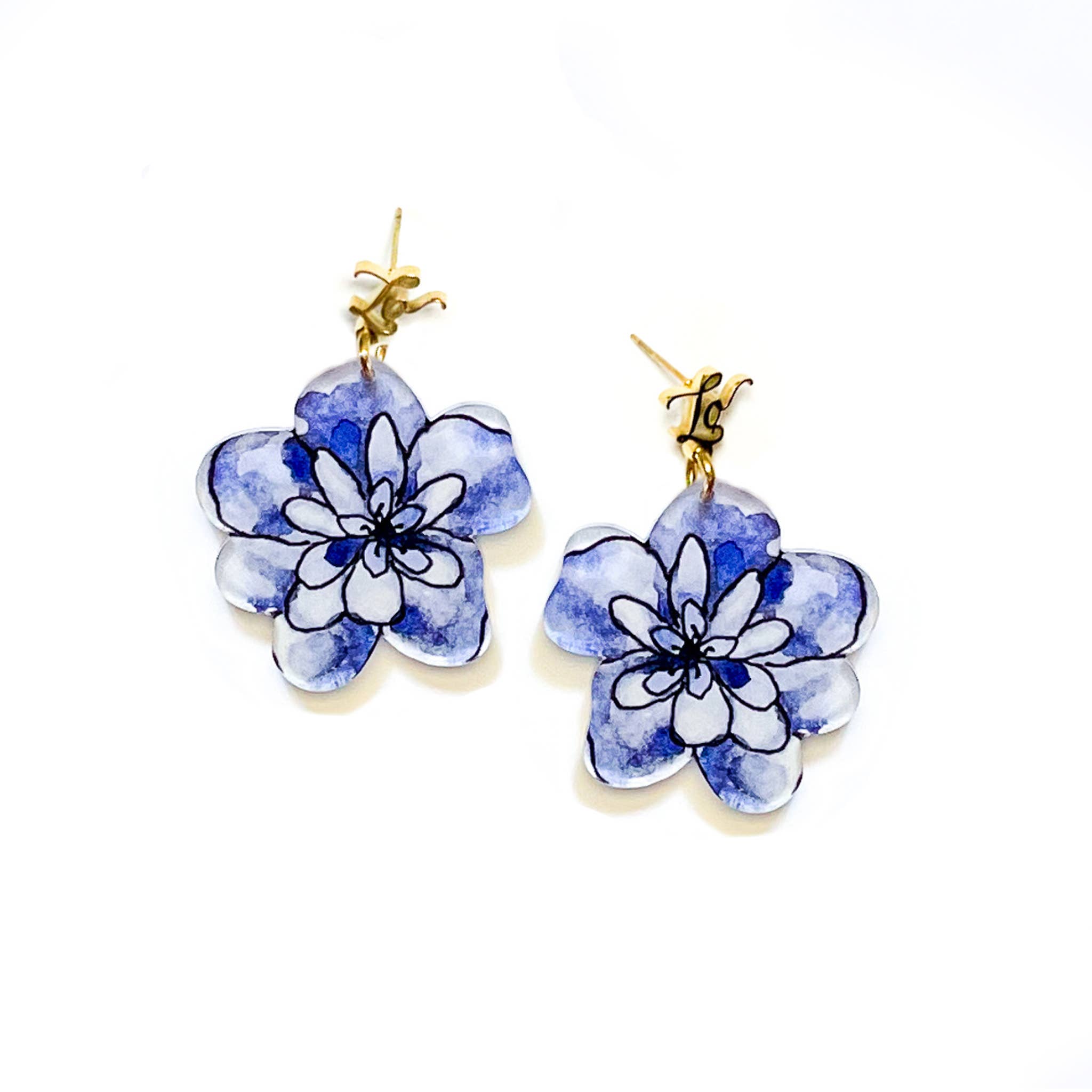 If you're fishing for compliments, these earrings are your ticket!! Make a statement with our acrylic earrings from Laura's original watercolors. Bold enough to wear for any occasion a statement is in order and light enough to wear comfortably all day long (our customer's rave about just how light they are!!)! Pair with jeans and a white shirt to elevate a casual vibe or with your favorite party dress to push your look over the top! Their versatility makes them great for packing and travel. Their 'one size fits all' nature makes them perfect for unique and thoughtful gifting. Packaged on a sturdy, clear acrylic card with words of affirmation "you are beautiful just the way you are" and in a mesh pouch. The 18K gold plated 316 stainless steel logo studs and posts make them more hypoallergenic than cheaper metals. Designed and assembled in our quaint Quincy, IL studio. LO in LONDON is a woman-owned, small-batch, artisan-based business featuring the artwork of Laura Wright.