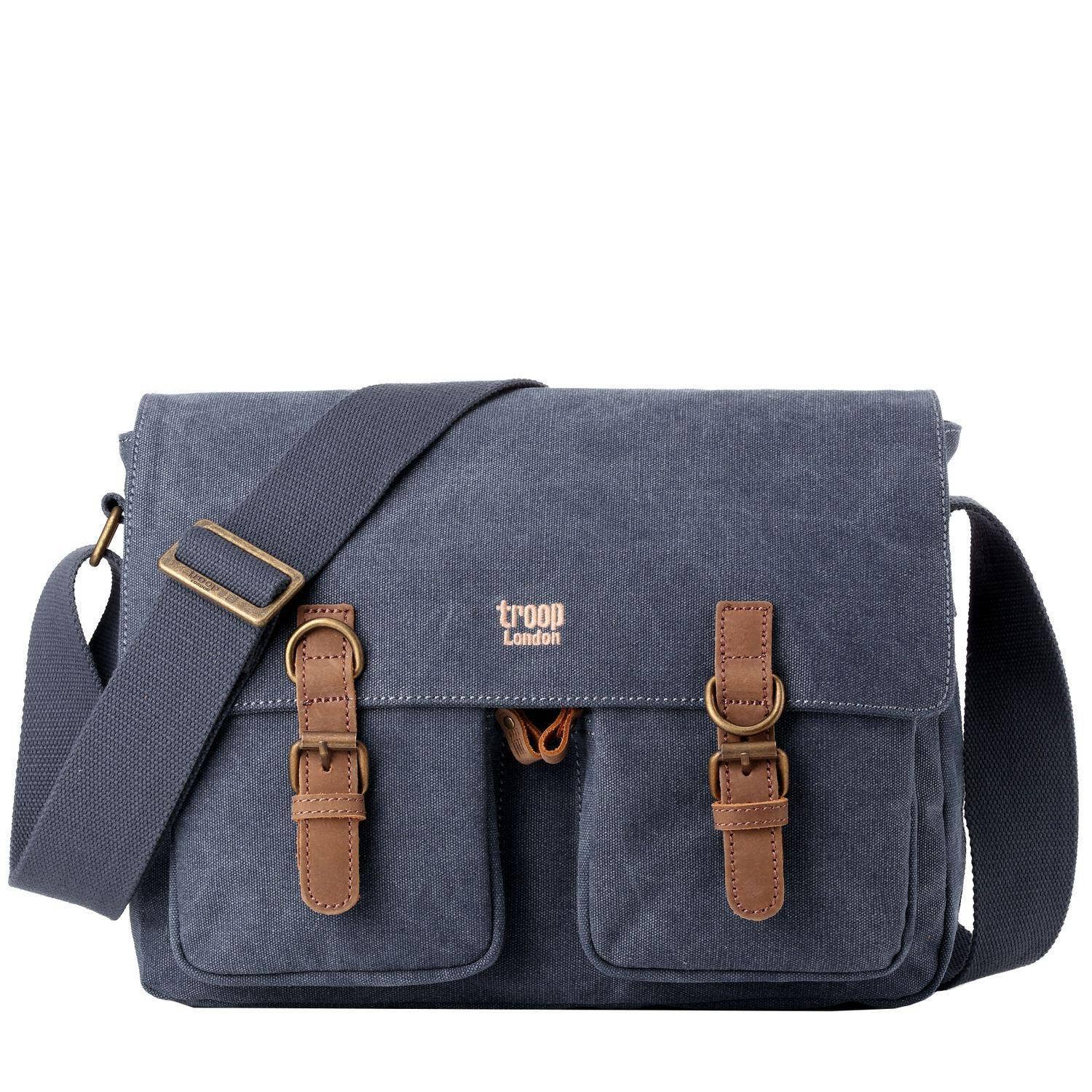 TRP0443 Troop London Heritage Canvas Leather Messenger Bag, Travel Bag, Tablet Friendly
