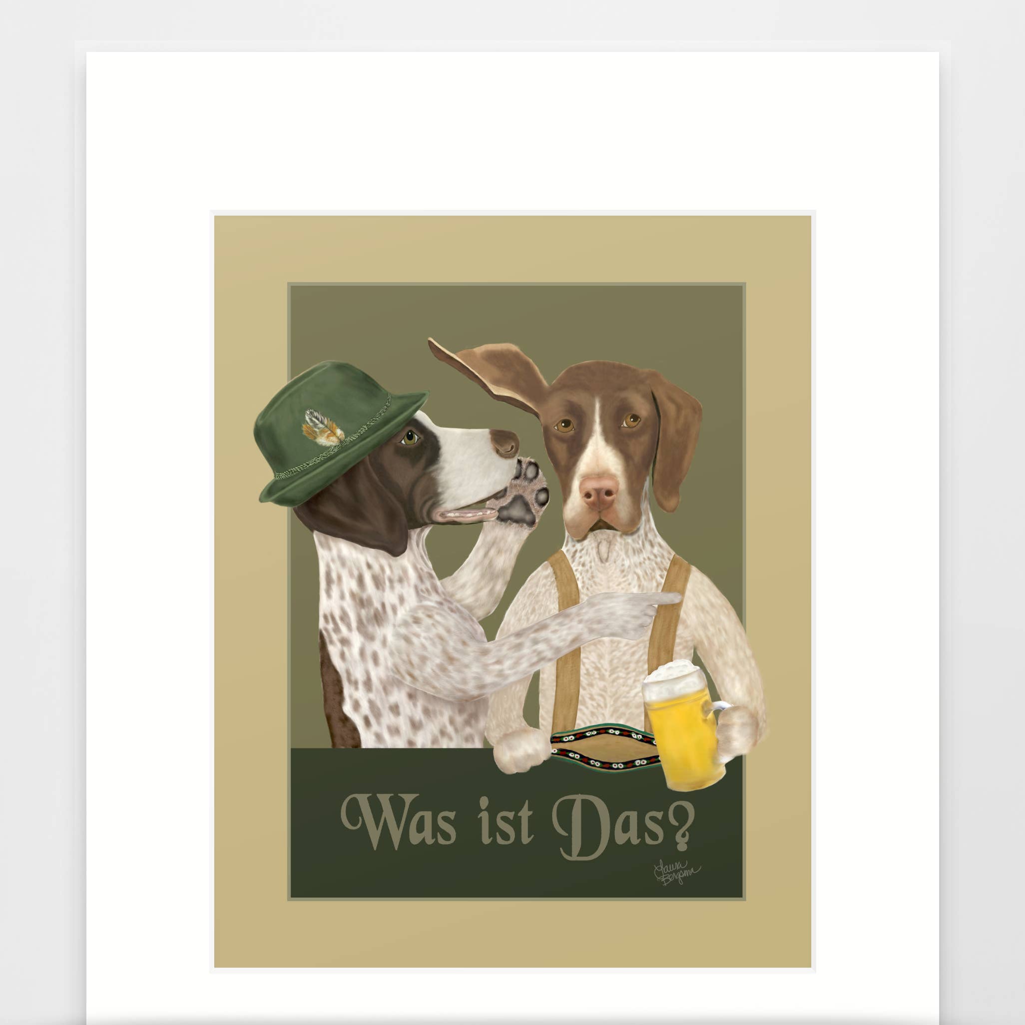 This bagel poster-style print features a Beagle dog peeking through a cream cheese bagel, licking cream cheese off of his nose. Artwork that is pawfect for the Beagle lover, or the Bagel lover. This funny dog art is great as kitchen decor, cafe decor, and barkery decor, and makes a great gift for the Beagle owner. "Bradley’s nose for business has made his barkery the trendiest place to grab a bagel on the south side – Overflowing with cream cheese, they are paw-licking good!" These high-quality giclée prints are printed on archival fine art paper and finished with an acid-free mat. Each print comes with an about the artist tag on the back and includes a small humorous description of the character. The print is packaged in an acid-free clear sleeve and mounted on a sturdy backer to protect its quality. Choose from Sizes: 1. A 5x7 art print matted to an 8x10 size. 2. An 8x10 art print matted to an 11x14 size. No frames are included.