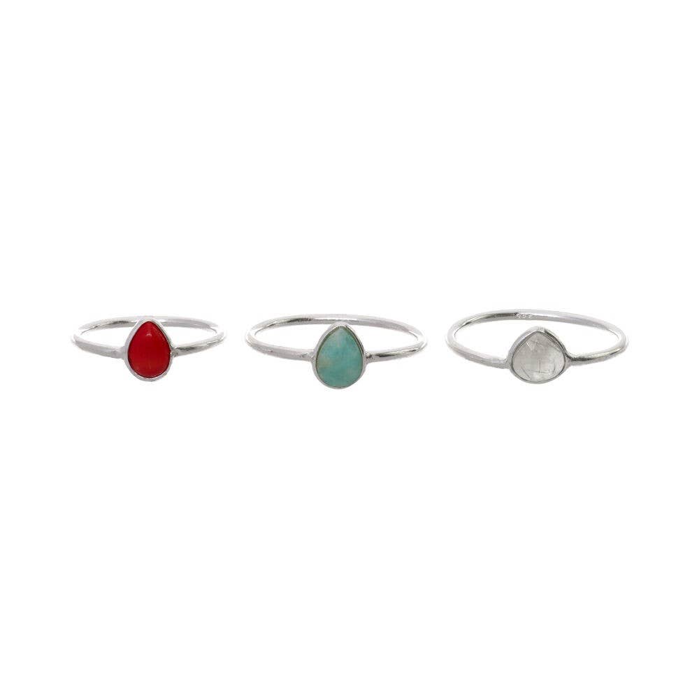 Small Moonstone Drop Ring in 925 Sterling Silver