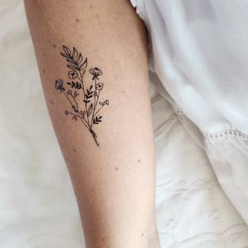 Bouquet of wild flowers temporary tattoo