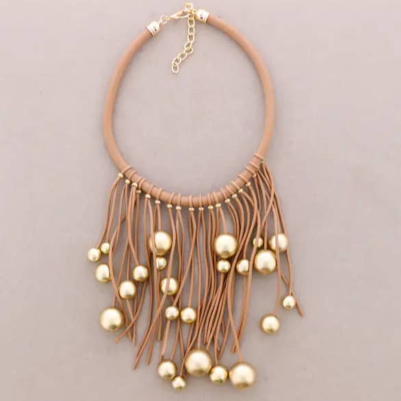 Long Necklace with Faceted Beads and Double Ball Pendants