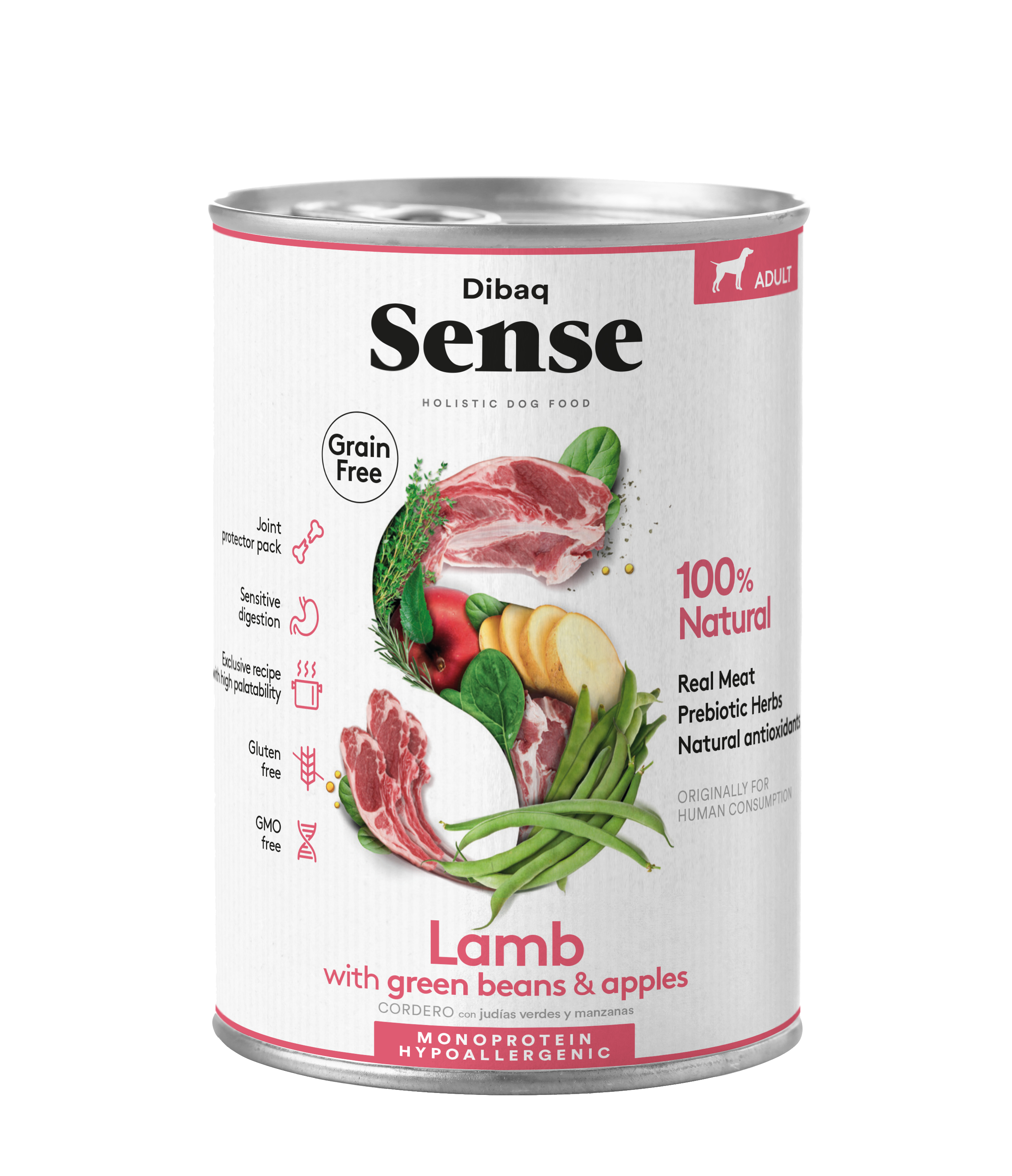 100% natural wet food for adult dogs, grain-free and gluten-free. Made with deer, wild boar and blueberries.