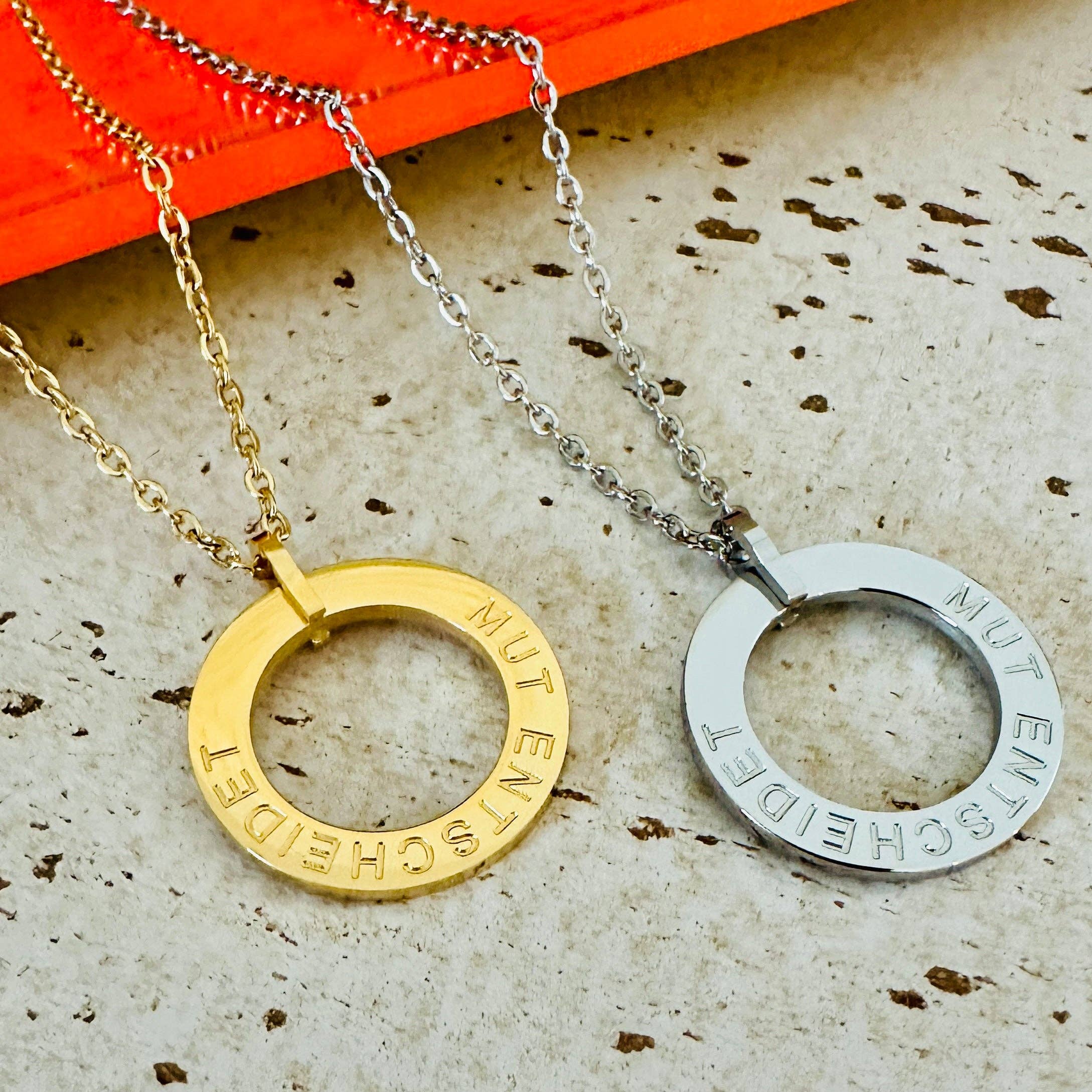 Mantra Necklace with Engraving: LIVE LOVE LAUGH Carry your personal mantra with the engraving "LIVE LOVE LAUGH" with you at all times. This elegant mantra necklace made of stainless steel in silver or gold is hypoallergenic, waterproof, durable, and sustainable. With a chain length of 45cm and an additional extension option of 5cm, it fits perfectly with any outfit. Delivered in a stylish gift box, it makes a beautiful gift for yourself or a special someone. Details: Material: Stainless steel (Color: Silver or Gold) Pendant size: Ø 18mm Chain length: 45cm + 5cm extension Features: Hypoallergenic, waterproof, durable, sustainable Packaging: Jewelry box