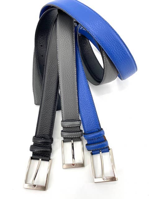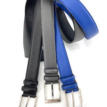 Adjustable to the desired level Width of 3.2 cm Cowhide leather finishes Zinc alloy buckle Colors: midnight blue and camel Delivered in its cotton pouch Available sizes: Size 0 (75-85cm) corresponds to a 34-38 Size 1 (85-100cm) corresponds to a 38-44 Size 2 (100-115cm) corresponds to a 44-50