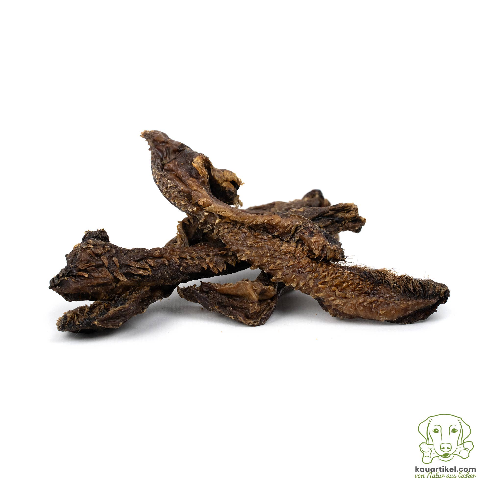 BOVINE ACHILLES TENDON without preservatives Due to the inherently high stability, when dried, the eyes become a firm, non-splintering chew that will put a lot of stress on your dog. By chewing for a long time, your dog's teeth are optimally cleaned, which makes the bovine Achilles tendon the perfect treat in between. Description: Length: 10-25cm Width: 2-6cm Weight (5 pieces): 200-300g Smell: little Fat content: medium Texture: hard Chewing pass: long composition: 100% beef Analytical components Crude protein: 85.3% Crude fat: 6.9% Crude ash: 1.0% Crude fiber: 1.5% Humidity: 5.3% feed materials Please note: These are natural chews and NOT machine-made products. The shape, color, size and weight can therefore differ greatly, and in some cases may also be outside the stated information.