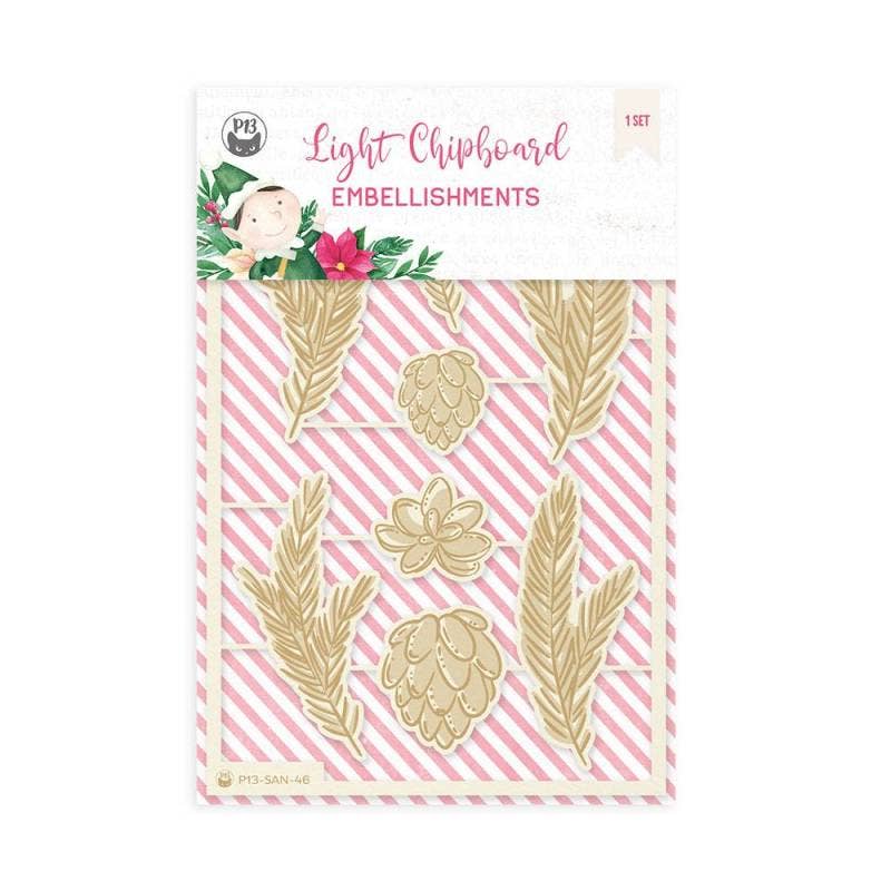Set of engraved light chipboard embellishments matching our collection. Sheet size 10x15cm / 4x6”. Chipboard tickness 1,15mm. Our packing is printed on the same paper like the rests of our products and it has a nice pattern inside. Can be used later in your papercraft projects! Pro tip: You add some colour usinf paints, inks, embossing, waxes or structural paste on the chipboard. They are a great extras for all your papercraft projects by addig some 3D effect Be careful when using water based mediums. To use a sigle elements use precision knife or scissors and cut little paper connectors.