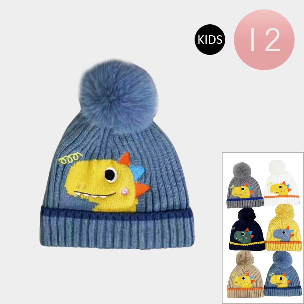 12PCS - Kids Dinosaur Pom Pom Knit Winter Hat