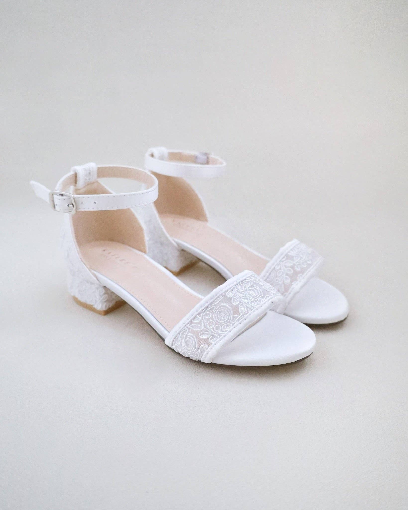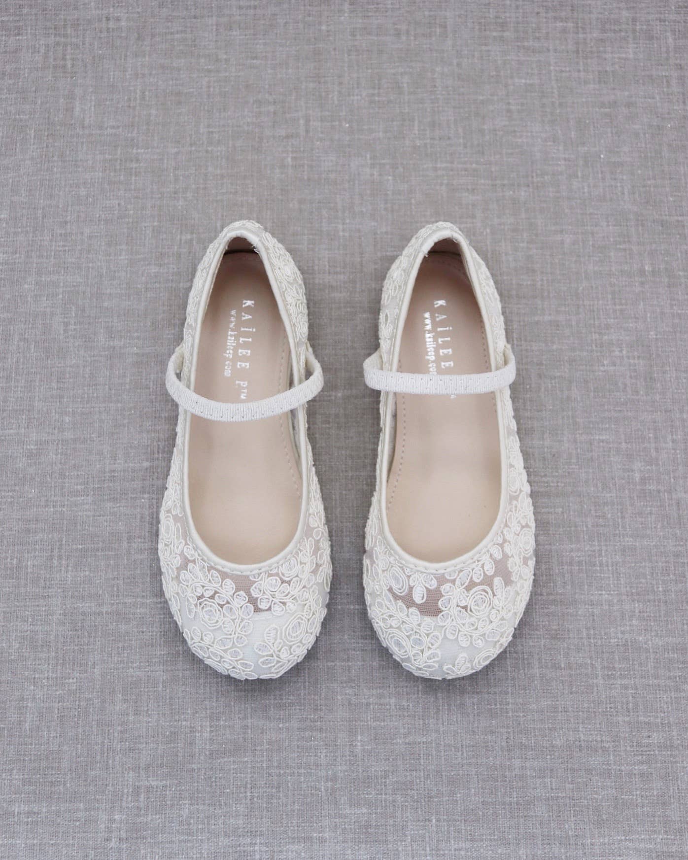 Chic and vintage lace ballet flats with ankle strap for support. Great for flower girls, wedding party or any partieS. DETAILS: UPPER: Synthetic upper and lining MATERIALS: Manmade outsole ORIGIN: Imported