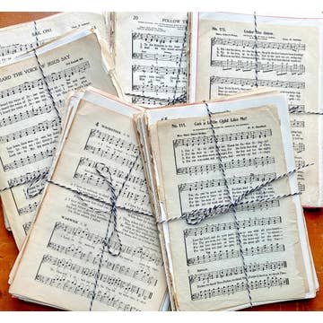 Vintage Hymnal Sheet Music. 50 or 100 Sheets, Aged Antique Paper, Junk Journals, Decoupage, Mixed Media, Crafting & Weddings. Quick Details: • Size: Mostly sized 8" x 5" • Era: 1940s-1950s, though some may be older and/or newer • Source: Mainly from Christian hymnals that were otherwise being discarded • Good to know: Paper quality will vary given the age, but this adds to the beautiful patina of antique and vintage sheet music. However, I will not include anything that is too ripped or torn to be used or enjoyed. Transform your creative projects or add a touch of vintage elegance to your wedding décor with this bundle of Christian hymnal sheet music! Mostly from the 1940s and 50s, each piece carries its own unique patina and character. Perfect for junk journals, decoupage, collage, card making, wedding decorations, and more. Bundle of 50: $9.50 Bundle of 100: $15 (save 20%!) Materials: vintage paper,sheet music,hymnal pages,music paper