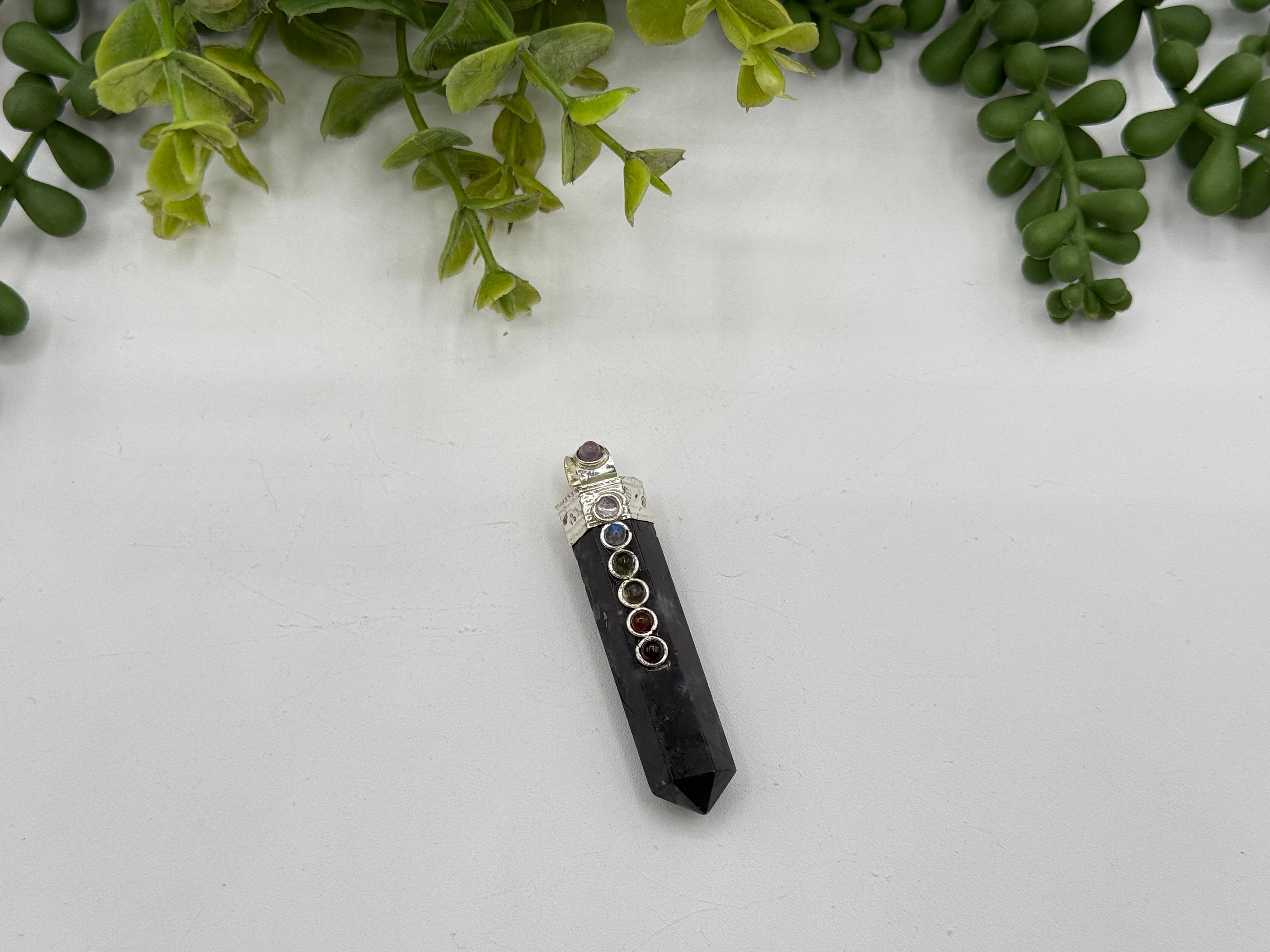 Gemstone Pyrite Pencil Pendant w/Chakra/Silver Metal Approx. Dimensions: (These dimensions are approximate and will fluctuate as they are all made by hand.) *Length: 4.5cm with Bail, *Width Top: 1 CM This picture is an representation of the type and quality of the gemstone you will be receiving. As you know, there are slight variations due to the natural character of this product. Disclaimer: Our information about crystal healing is meant to sooth mental stress, promote emotional well-being, and aid spiritual exploration. Gemstones and healing crystals are not a substitute for medical care. If you have a physical or mental illness, please see a doctor or mental health professional.