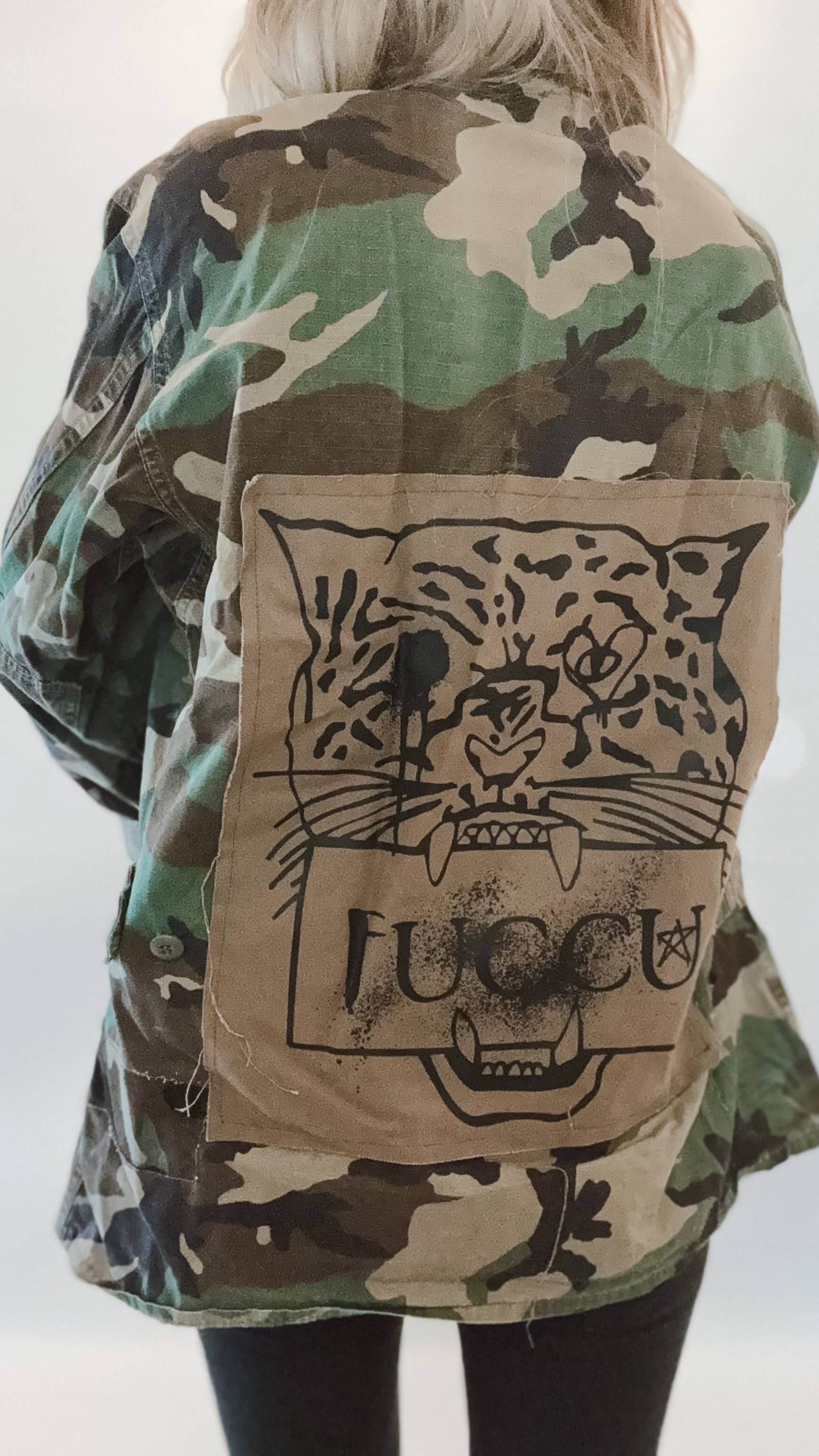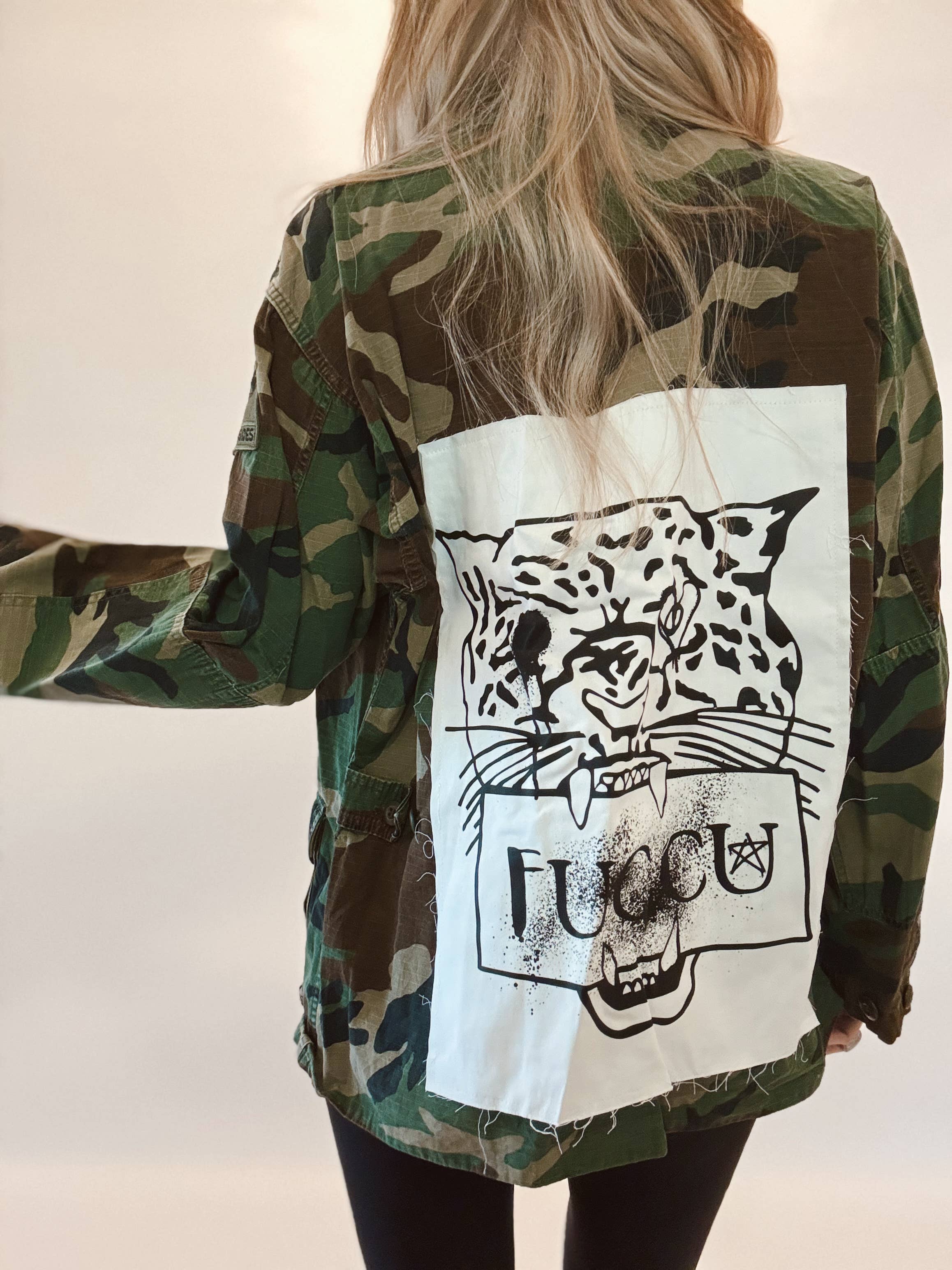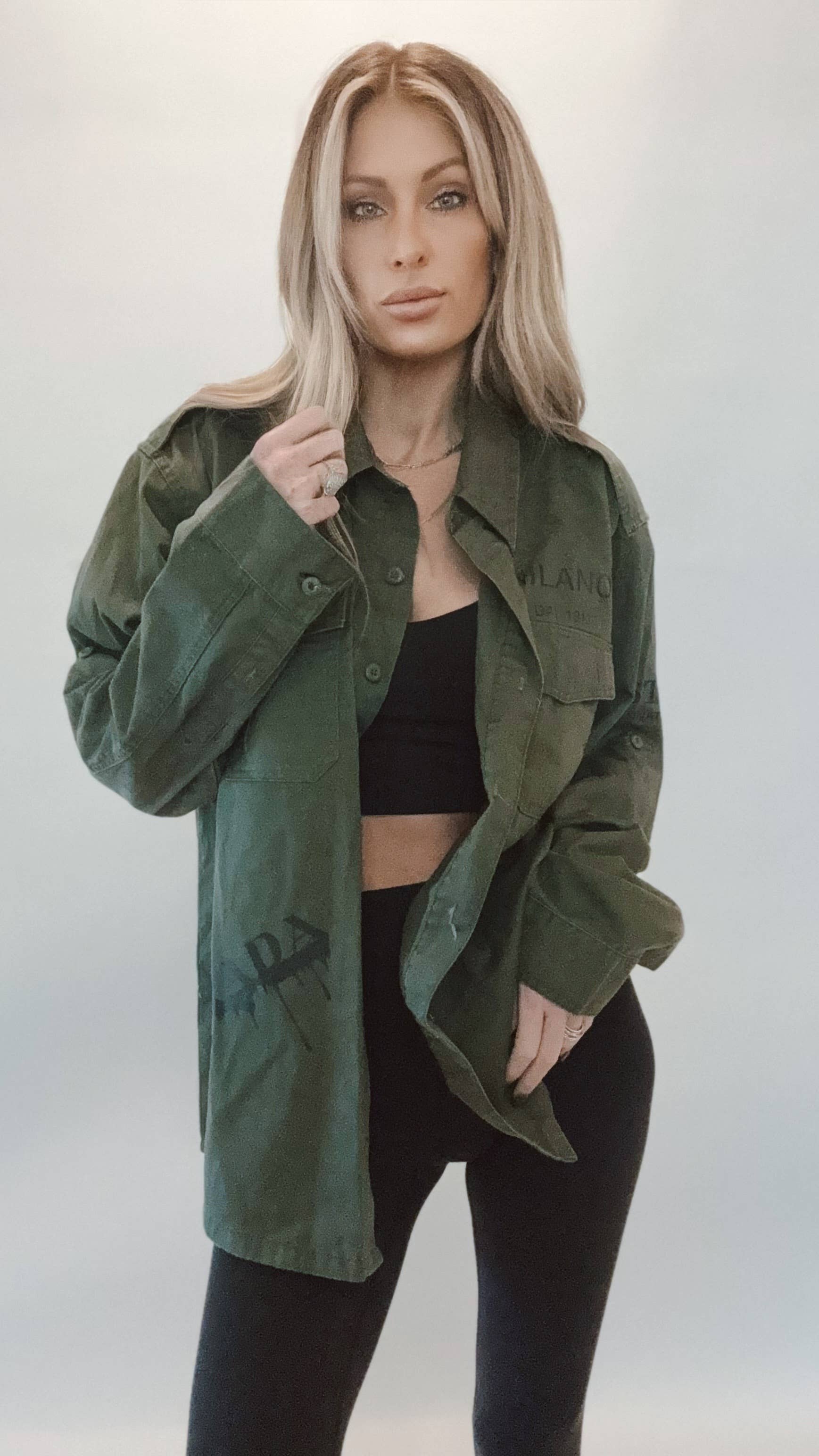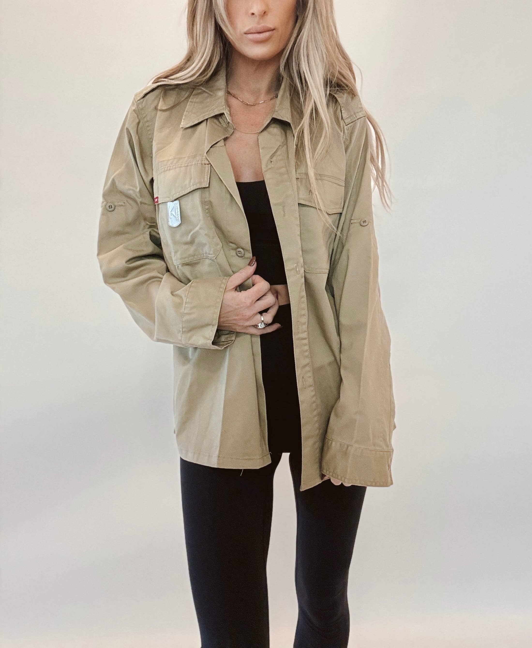 INICIO DE LA CHAQUETA DE CAMPAMENTO ORIGINAL LA MUJER DETRÁS DE LA ETIQUETA «En algún lugar a lo largo de la autopista de la costa del Pacífico encontré mi alma en el sonido de la aventura. Para mí, ese sonido era de tres niñas pequeñas riendo en el asiento trasero y atrapando el viento en sus cabellos. Esas tres niñas pequeñas son mi ALMA, son mi RIDE OR DIES, son mi TRIBU. Espero que tu pieza te permita emprender las aventuras de la vida, compartir tus historias con tu tribu y escuchar los sonidos que alimentan tu alma. Ya sea que esté en el PCH, en un viaje por carretera a Montana o sueñe con Tulum, ponga música, baje las ventanillas y disfrute del viaje». LA CHAQUETA- Cualquier cosa menos moda rápida. Todas y cada una de nuestras chaquetas de campamento son auténticas fatigas emitidas por el ejército estadounidense que se remontan a la Guerra Civil. Desde la costa oeste hasta la costa este, nos hemos asociado con empresas de veteranos y veteranos para obtener las mejores piezas vintage para usted. Cada uno es único en su clase, hecho a pedido en nuestro soleado estudio de California. Cada chaqueta es ligeramente diferente, lo que significa que la prenda que tienes está seleccionada por nuestras manos con sus propias insignias y parches auténticos. Nos enorgullecemos de dar nueva vida a cada pieza única. EL ESTILO DE VIDA- Sustentable. Propiedad de una mujer. Lote pequeño. Hecho en Estados Unidos. Úsalo, agrégalo, crea tu historia.