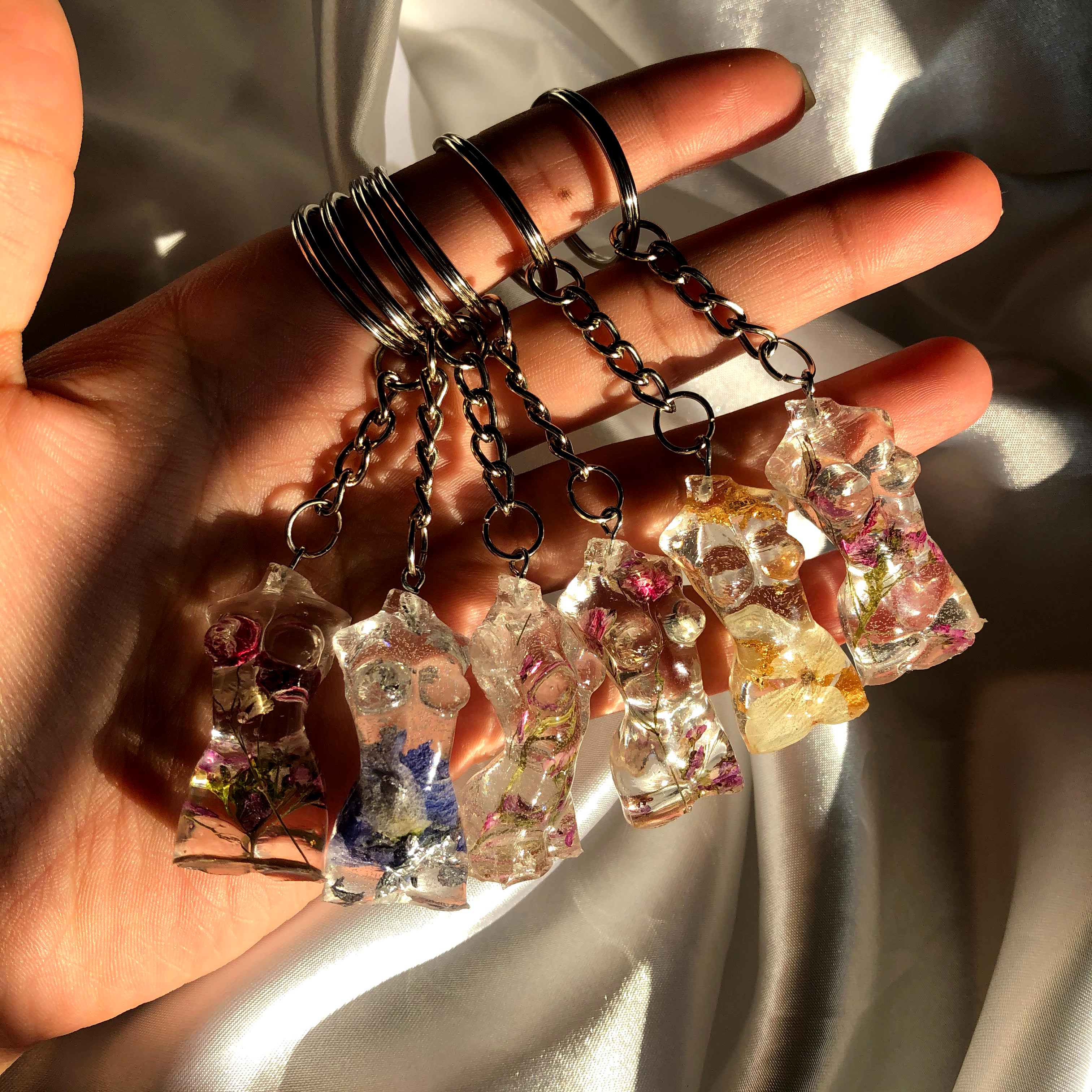 ¡Hola! ¡Es un placer conocerte! Siempre he tenido afinidad con muchas artes y oficios diferentes. ¡Desde dibujar, pintar, esculpir a mano y todo lo demás! Esto me lleva a adquirir con frecuencia nuevos intereses, como cosechar hojas y flores del jardín de mi madre. Cada pieza está hecha a mano con flores y hojas secas reales con resina transparente de alta calidad. Empecé a fabricar accesorios de resina a principios de junio de 2020 por curiosidad. Poco después empecé a vender mis creaciones y vi la oportunidad de ampliar lo que había creado. Ha sido un largo viaje y todavía me sorprende lo mucho que he crecido como pequeña empresa y como persona. ¡Me esfuerzo por crear algo de lo que pueda recordar y sentirme orgulloso!