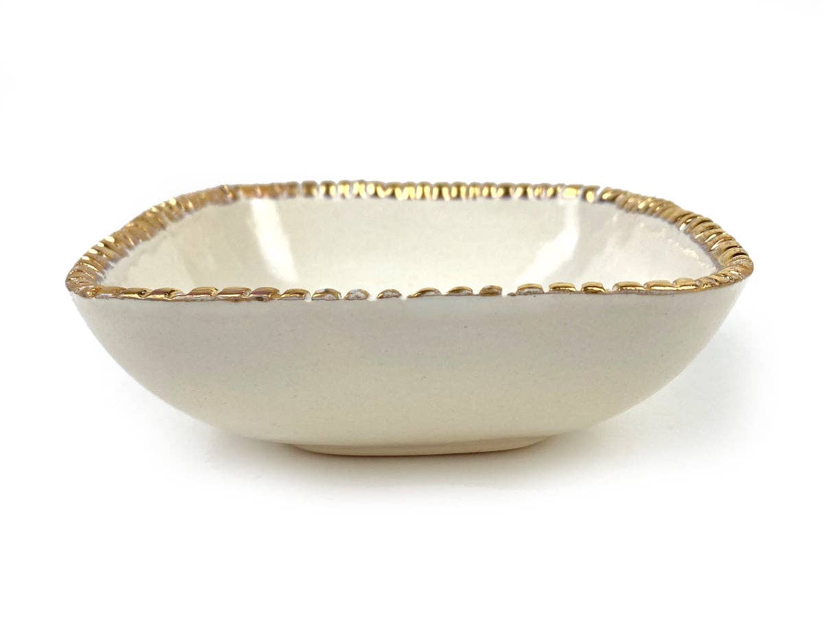 En los últimos 25 años, he vendido mis artículos hechos a mano y vestidos a minoristas de todo el país, pero mi historia comienza en los mercadillos de la ciudad de Nueva York. ¿Qué haces con una maestría en escultura de arcilla de la Universidad de Nueva York? Haría platos, cuencos, tazas, jarrones durante la semana en mi loft de Brooklyn, y luego cargaba un camión de mano y llevaba mis mercancías a través del sistema de metro de Nueva York, para vender en ferias callejeras y mercadillos en Manhattan los fines de semana. El año era 1991, y yo vivía en un loft de trabajo en Brooklyn. Mi método fue (y es) combinar de forma asequible oro de 24k o platino, con mis artículos de porcelana hechos a mano, para que el metal precioso se integre en el diseño de la pieza. Me gustó que mi mano fuera visible en las piezas terminadas, bordes irregulares, huellas dactilares y líneas. Estaba en mi estudio trabajando un día cuando sonó el teléfono, y el caballero del otro extremo de la línea se presentó como John Loring, vicepresidente de Tiffany & Co.